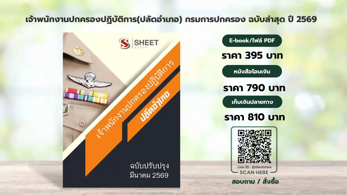 แนวข้อสอบ เจ้าพนักงานปกครองปฏิบัติการ (ปลัดอำเภอ) กรมการปกครอง [มีนาคม 2569]