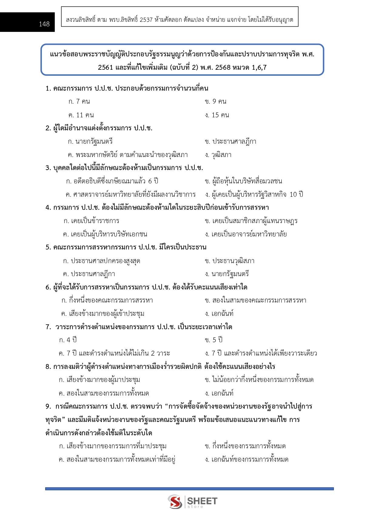– แนวข้อสอบพระราชบัญญัติประกอบรัฐธรรมนูญว่าด้วยการป้องกันและปราบปรามการทุจริต พ.ศ. 2561 และที่แก้ไขเพิ่มเติม (ฉบับที่ 2) พ.ศ. 2568 หมวด 1,6,7