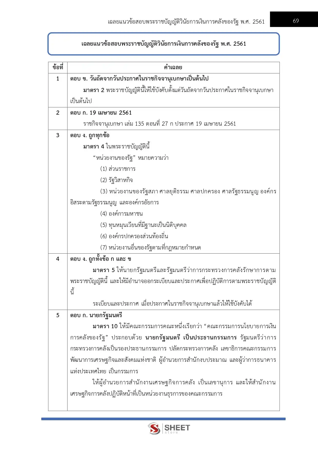 – แนวข้อสอบพระราชบัญญัติวินัยการเงินการคลังของรัฐ พ.ศ. 2561