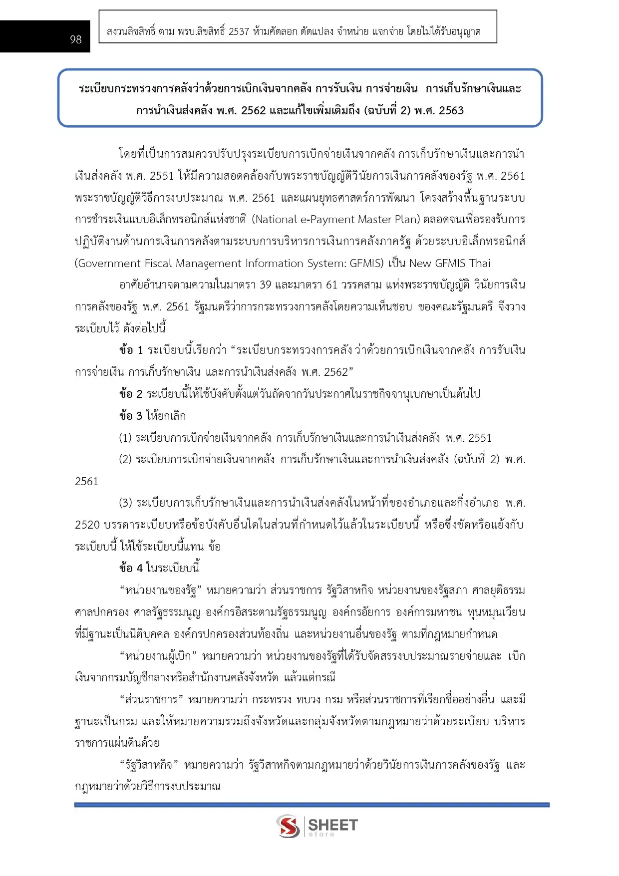 – แนวข้อสอบระเบียบกระทรวงการคลังว่าด้วยการเบิกเงินจากคลัง การรับเงิน การจ่ายเงิน การเก็บรักษาเงินและการนำเงินส่งคลัง พ.ศ. 2562 และแก้ไขเพิ่มเติมถึง (ฉบับที่ 2) พ.ศ. 2563
