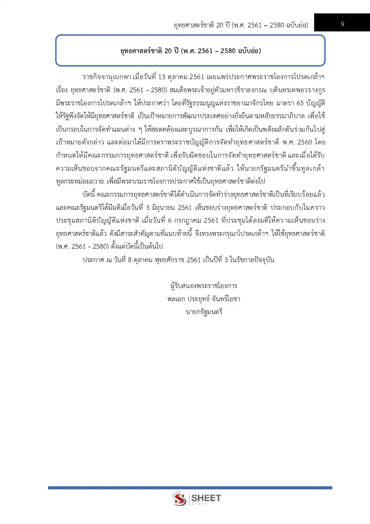 – แนวข้อสอบยุทธศาสตร์ชาติ 20 ปี (พ.ศ. 2561 – 2580 ฉบับย่อ)