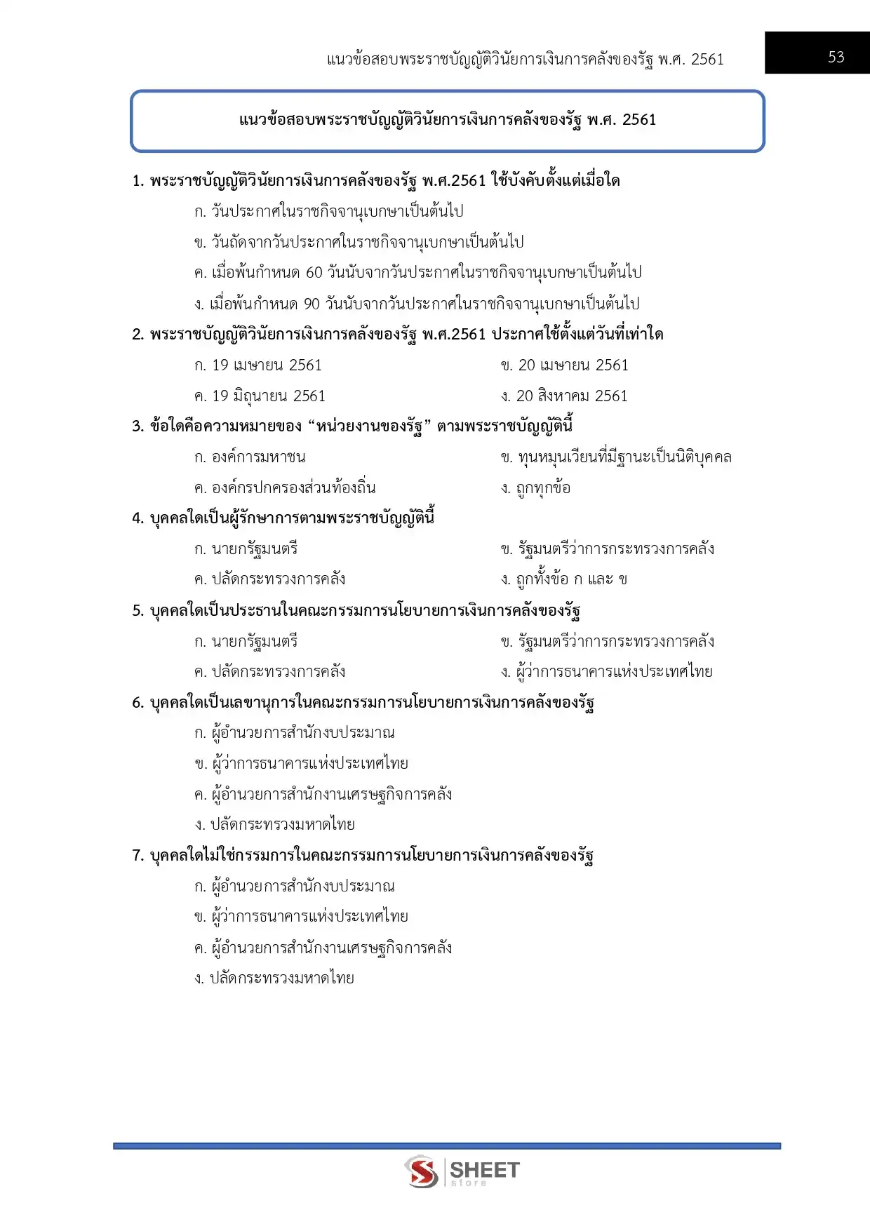 – แนวข้อสอบพระราชบัญญัติวินัยการเงินการคลังของรัฐ พ.ศ. 2561