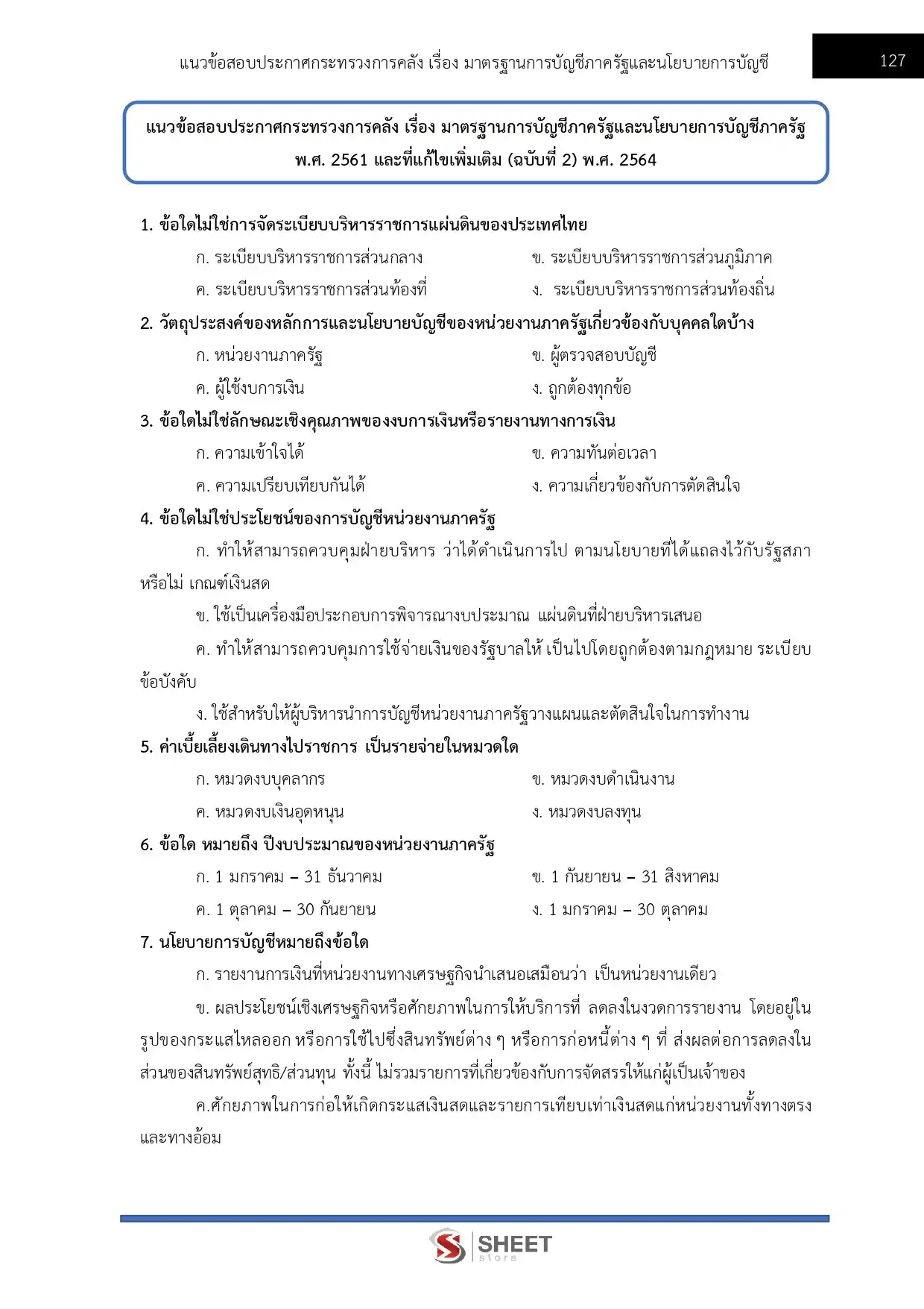– แนวข้อสอบสรุปหลักการและนโยบายการบัญชีภาครัฐ พ.ศ. 2561