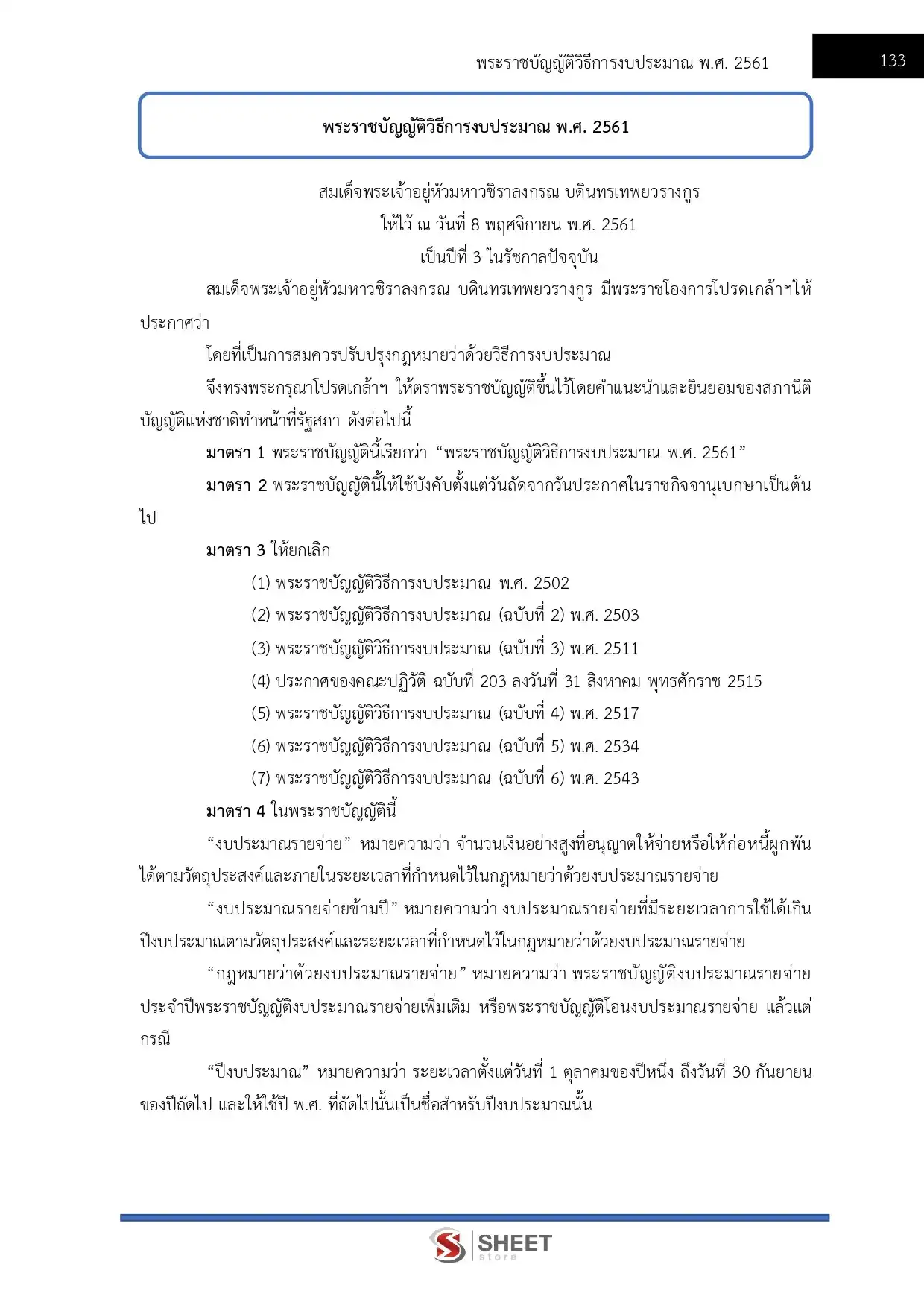 – แนวข้อสอบพระราชบัญญัติวิธีการงบประมาณ พ.ศ. 2561