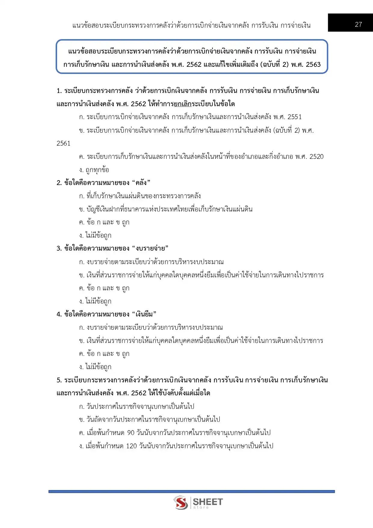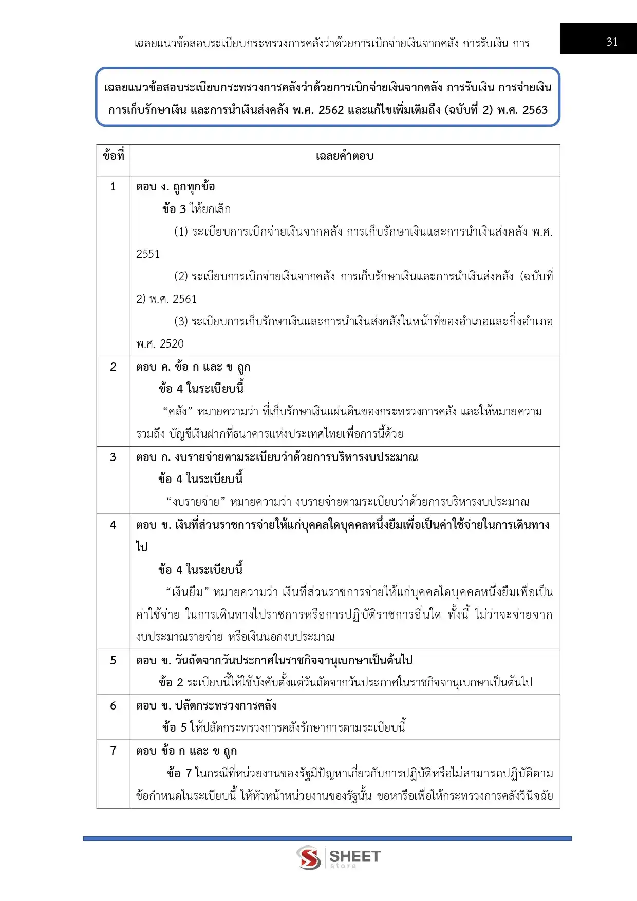 – แนวข้อสอบระเบียบกระทรวงการคลังว่าด้วยการเบิกเงินจากคลัง การรับเงิน การจ่ายเงิน การเก็บรักษาเงินและการนำเงินส่งคลัง พ.ศ. 2562 และแก้ไขเพิ่มเติมถึง (ฉบับที่ 2) พ.ศ. 2563