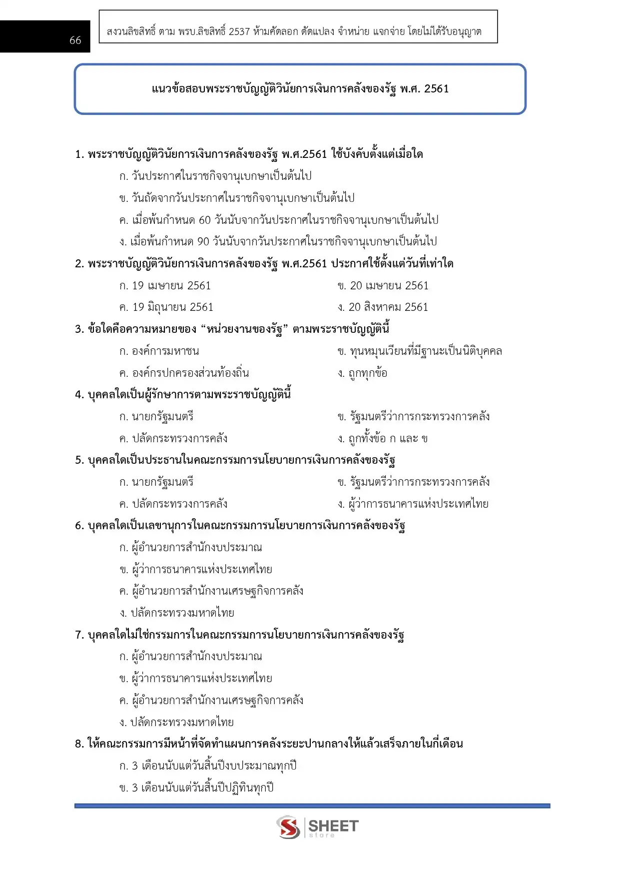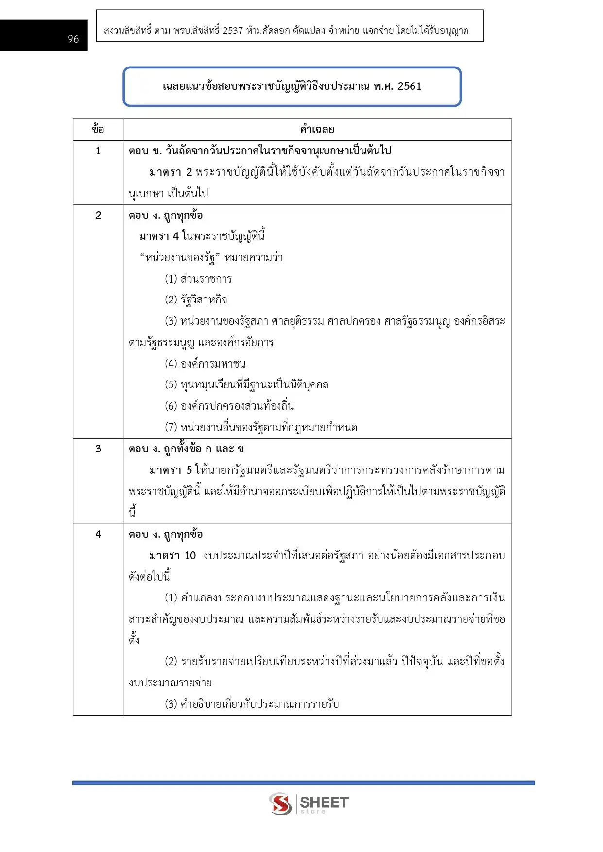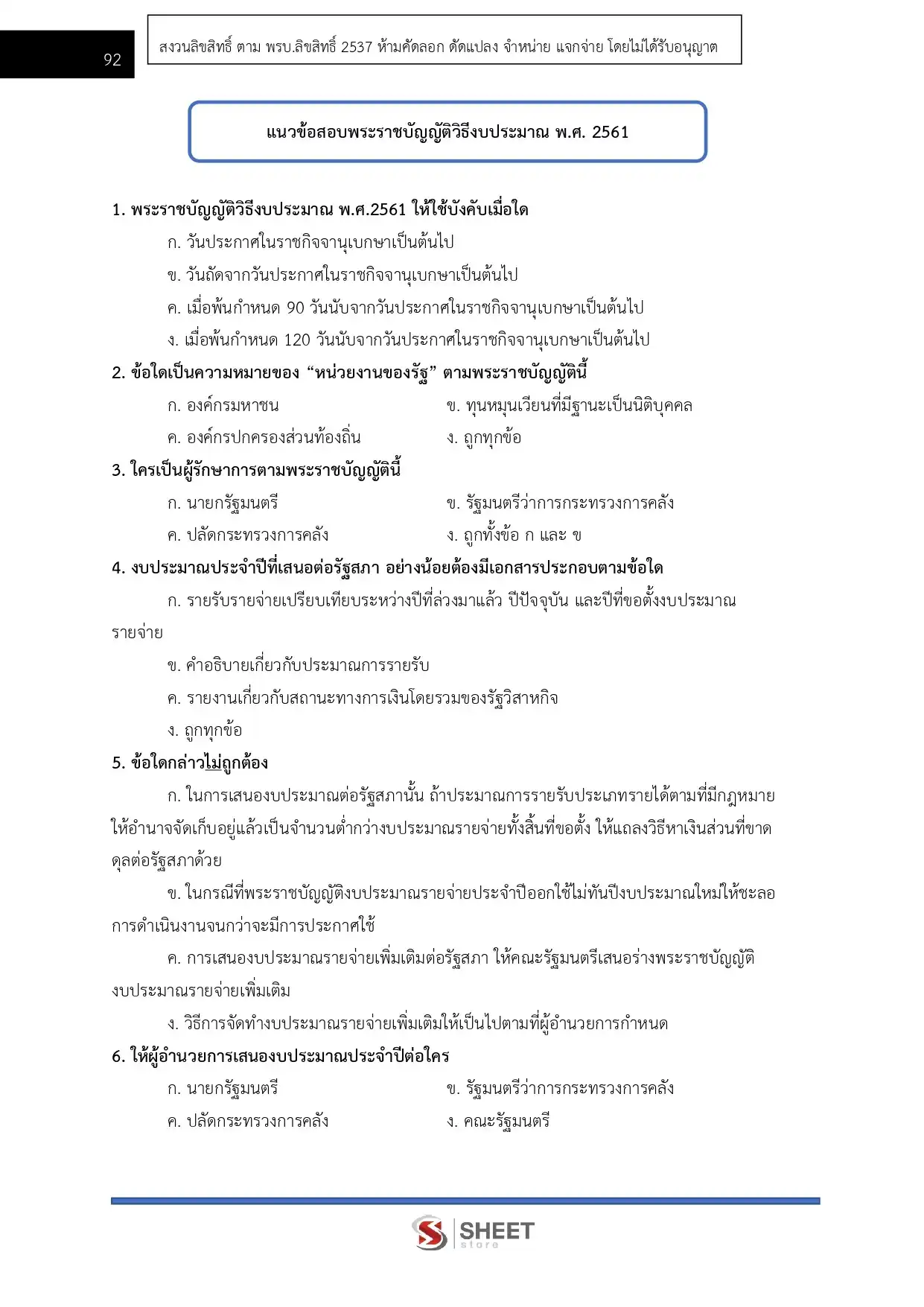 – แนวข้อสอบพระราชบัญญัติวิธีการงบประมาณ พ.ศ. 2561