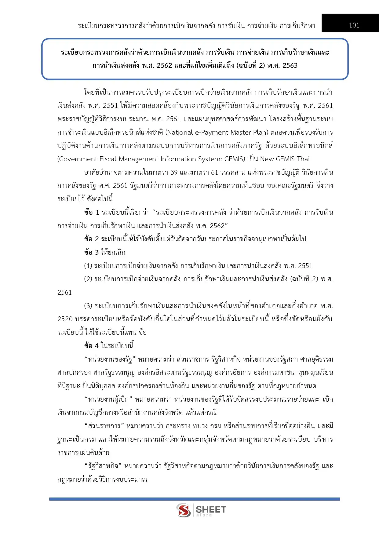 – แนวข้อสอบระเบียบกระทรวงการคลังว่าด้วยการเบิกเงินจากคลัง การรับเงิน การจ่ายเงิน การเก็บรักษาเงินและการนำเงินส่งคลัง พ.ศ. 2562 และแก้ไขเพิ่มเติมถึง (ฉบับที่ 2) พ.ศ. 2563