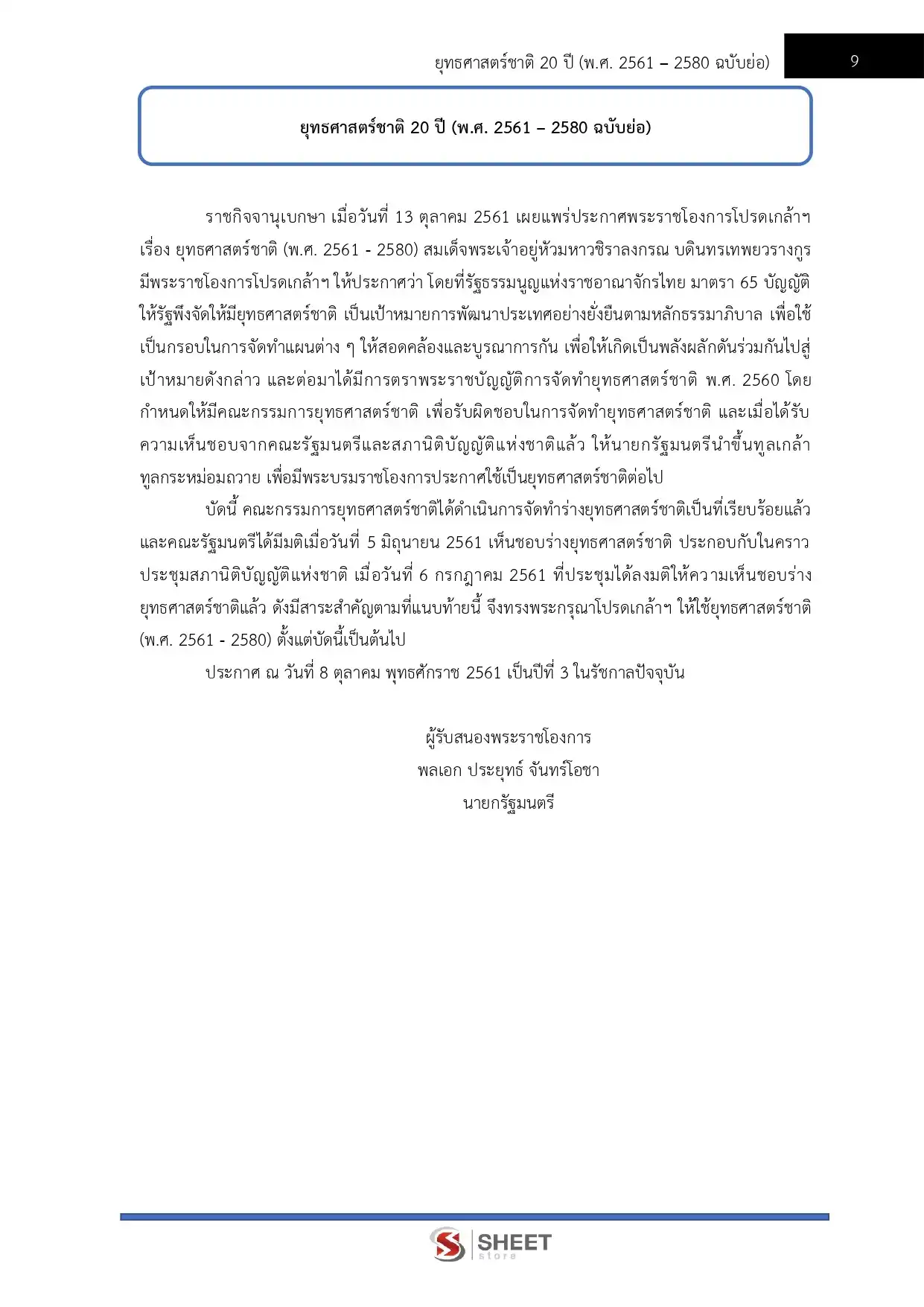 – ยุทธศาสตร์ชาติ 20 ปี (พ.ศ. 2561 – 2580 ฉบับย่อ)