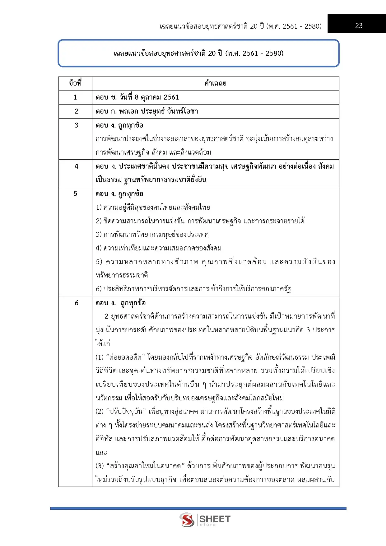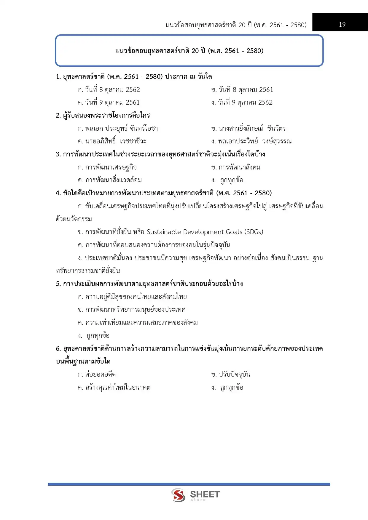 – แนวข้อสอบยุทธศาสตร์ชาติ 20 ปี (พ.ศ. 2561 – 2580 ฉบับย่อ)