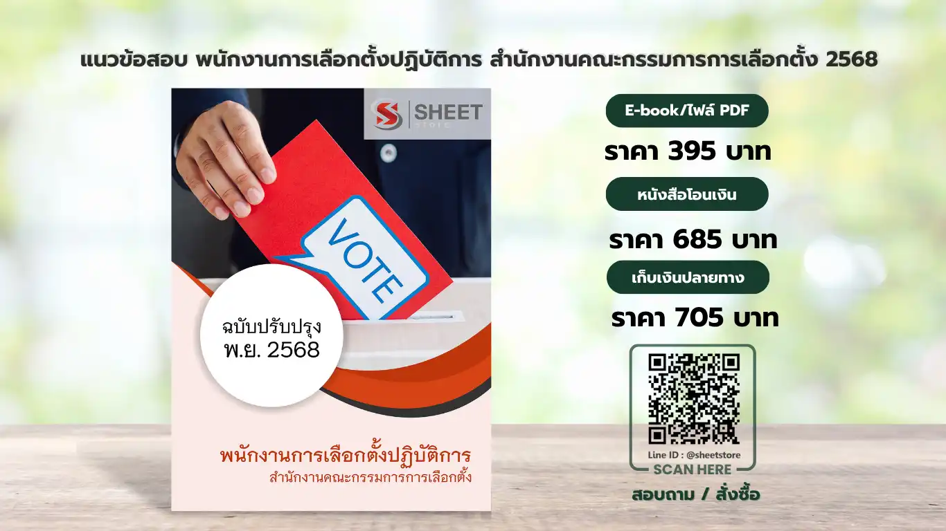 แนวข้อสอบ พนักงานการเลือกตั้งปฏิบัติการ สำนักงานคณะกรรมการการเลือกตั้ง (กกต) อัพเดตล่าสุด พฤศจิกายน 2568 เนื้อหาอัพเดตครบถ้วนตรงตามประกาสอบ สรุป เนื้อหา และแนวข้อสอบ พร้อมเฉลย [ครบจบในเล่มเดียว]