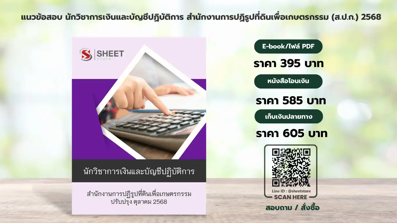 แนวข้อสอบ นักวิชาการเงินและบัญชีปฏิบัติการ สำนักงานการปฏิรูปที่ดินเพื่อเกษตรกรรม (ส.ป.ก.) สอบบรรจุข้าราชการ ฉบับปรับปรุ่งล่าสุด ตุลาคม 2568