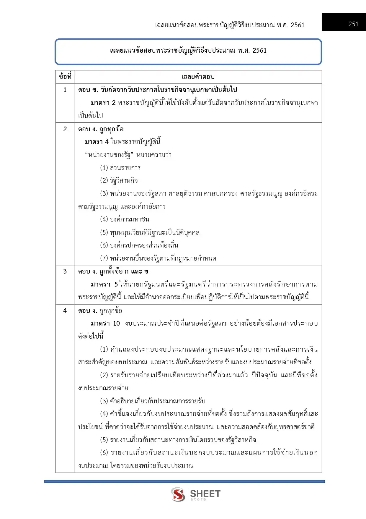 – แนวข้อสอบพระราชบัญญัติวิธีการงบประมาณ พ.ศ. 2561