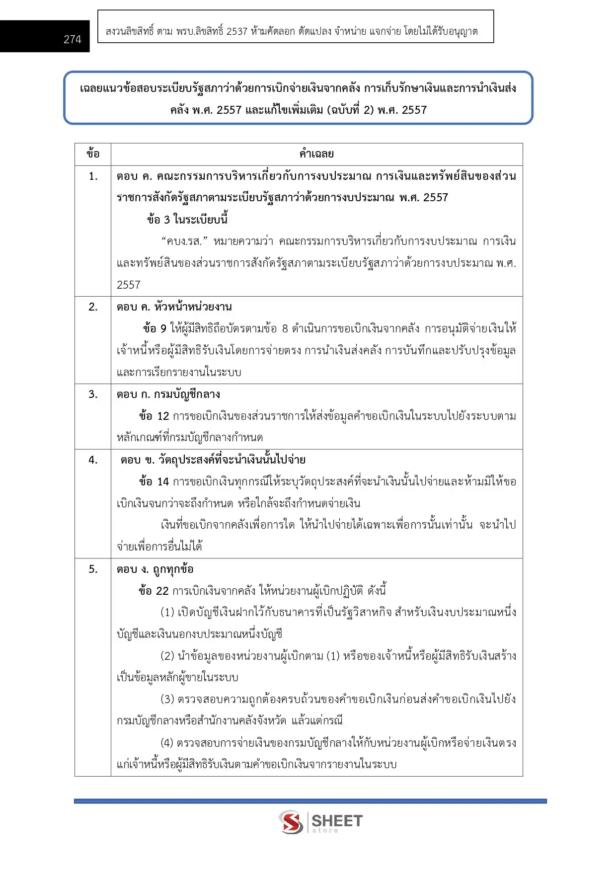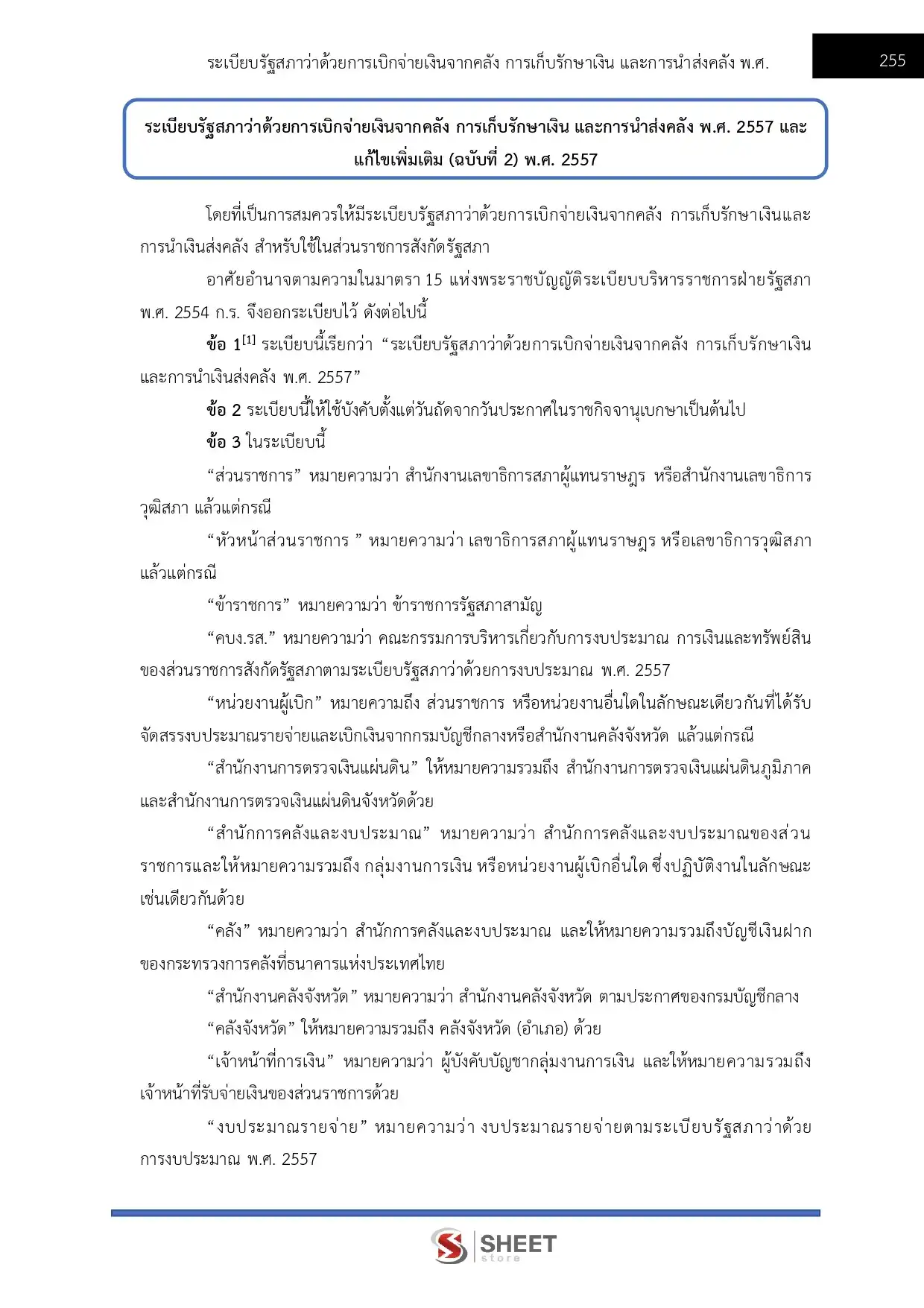– แนวข้อสอบระเบียบรัฐสภาว่าด้วยการเบิกจ่ายเงินจากคลัง การเก็บรักษาเงิน และการนำส่งคลัง พ.ศ. 2557 และแก้ไขเพิ่มเติม (ฉบับที่ 2) พ.ศ. 2557