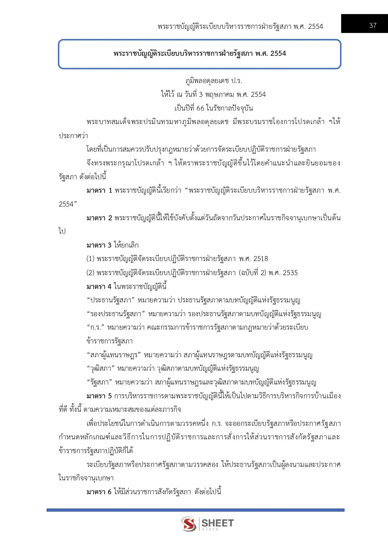 – แนวข้อสอบพระราชบัญญัติระเบียบบริหารราชการฝ่ายรัฐสภา พ.ศ. 2554