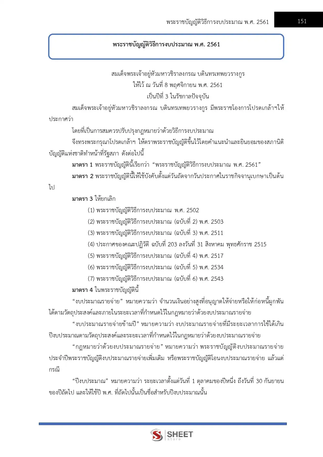 – แนวข้อสอบพระราชบัญญัติวิธีการงบประมาณ พ.ศ. 2561