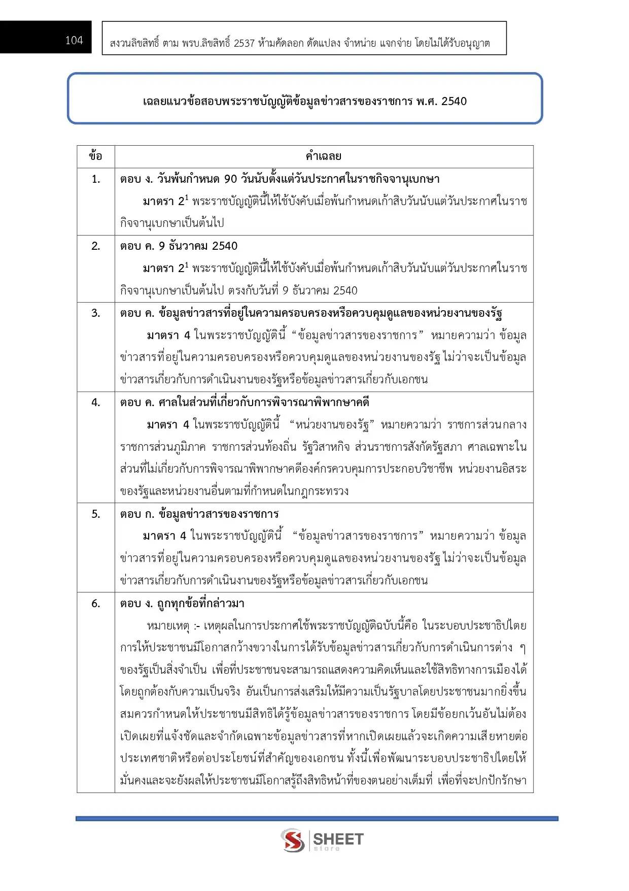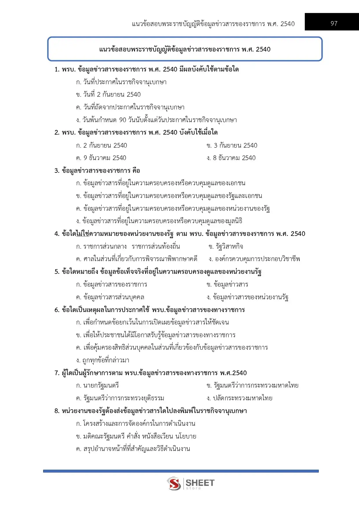 – แนวข้อสอบพระราชบัญญัติข้อมูลข่าวสาร พ.ศ. 2540