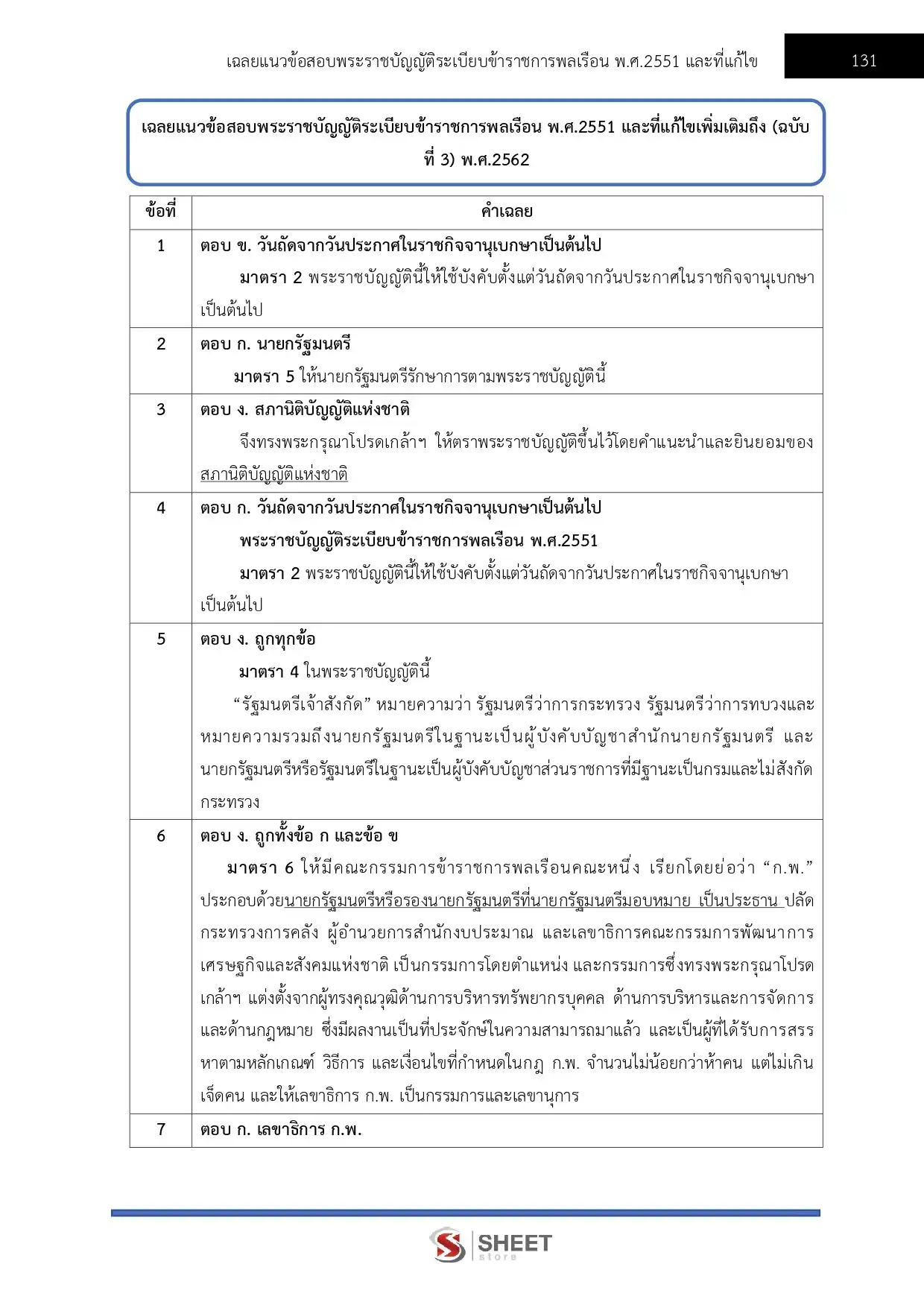 – แนวข้อสอบพระราชบัญญัติระเบียบข้าราชการพลเรือน พ.ศ. 2551 และที่แก้ไขเพิ่มเติมถึง (ฉบับที่ 3) พ.ศ. 2562