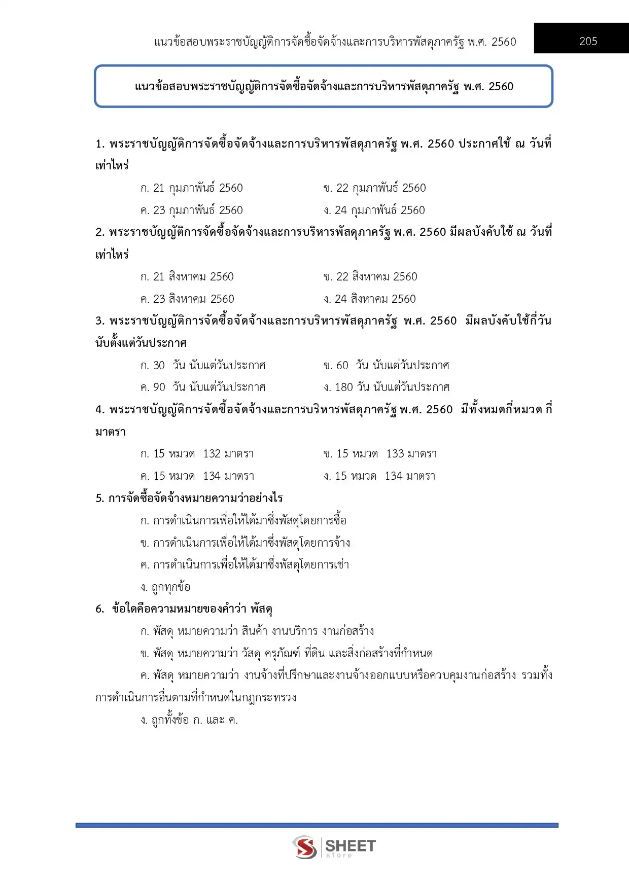 – แนวข้อสอบพระราชบัญญัติการจัดซื้อจัดจ้างและการบริหารพัสดุภาครัฐ พ.ศ. 2560