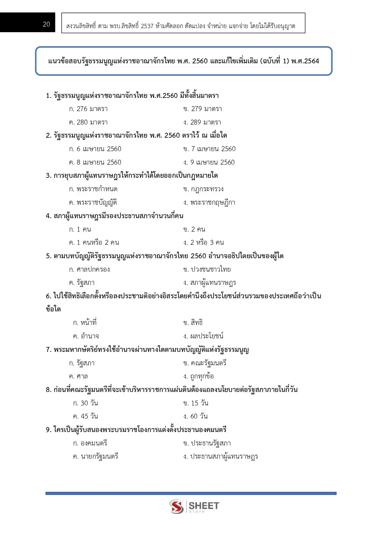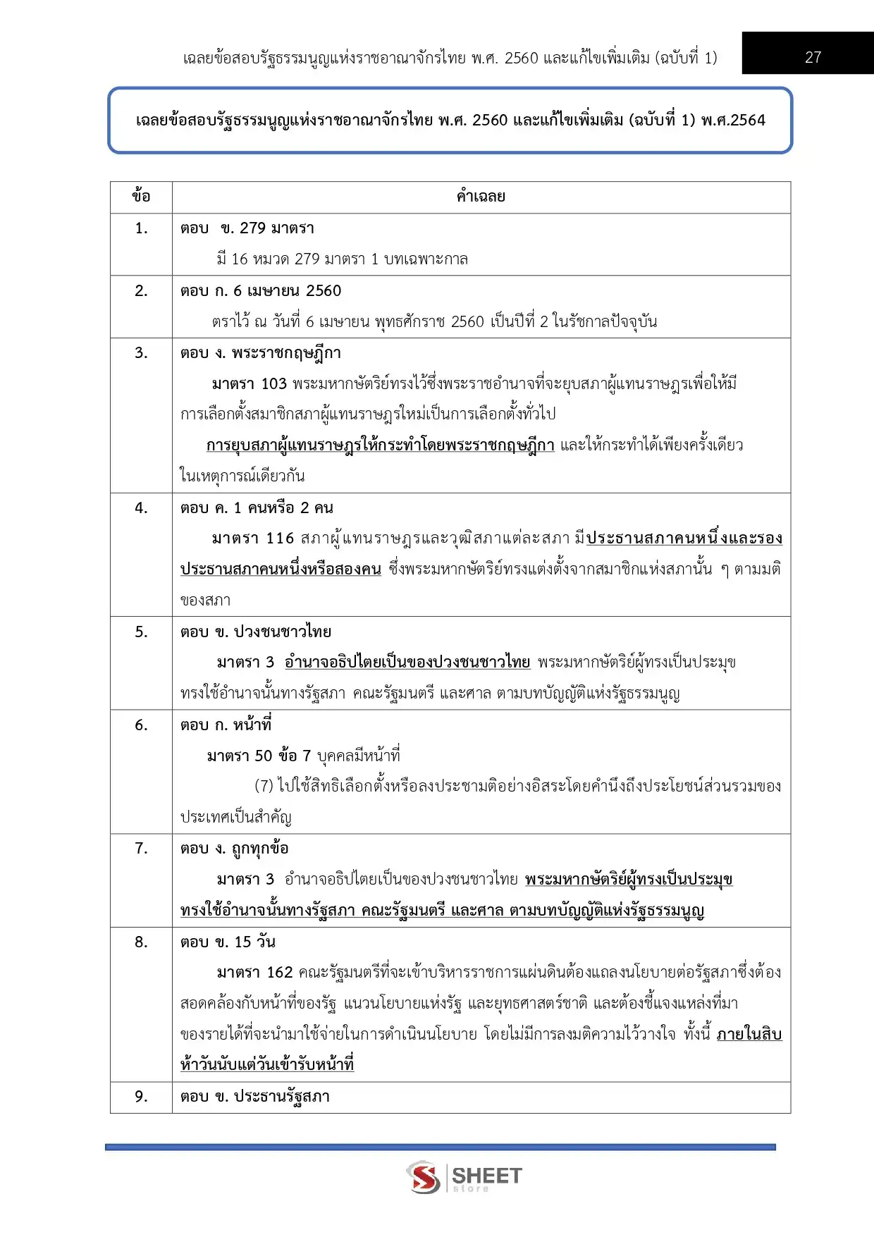 – แนวข้อสอบรัฐธรรมนูญแห่งราชอาณาจักรไทย พ.ศ. 2560 และที่แก้ไขเพิ่มเติม (ฉบับที่ 1) พ.ศ. 2564