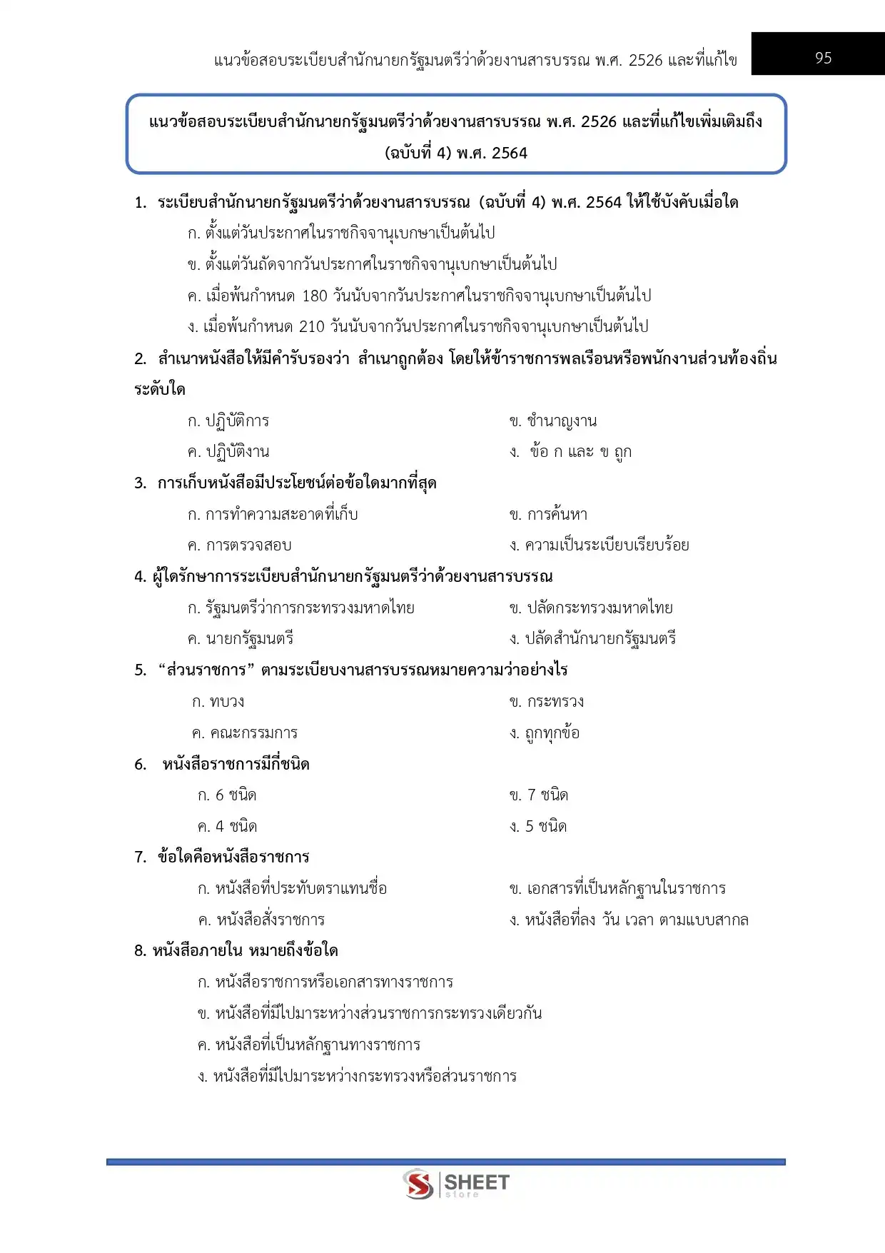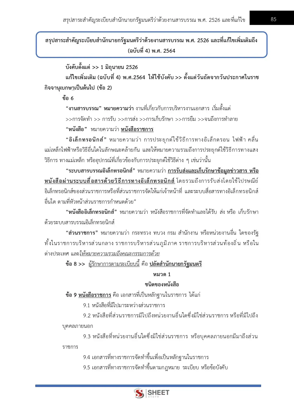 – แนวข้อสอบสรุปสาระสำคัญระเบียบสำนักนายกรัฐมนตรีว่าด้วยงานสารบรรณ พ.ศ. 2526 และที่แก้ไขเพิ่มเติมถึง (ฉบับที่ 4) พ.ศ. 2564