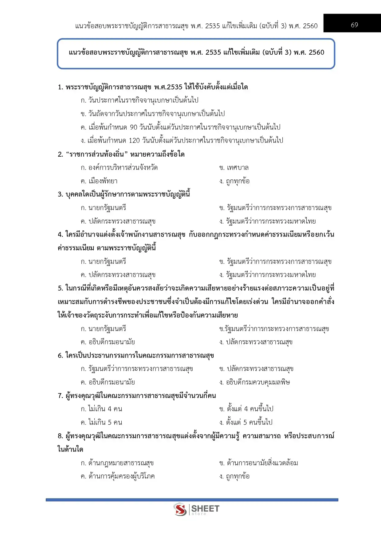 – แนวข้อสอบพระราชบัญญัติการสาธารณสุข พ.ศ. 2535 และที่แก้ไขเพิ่มเติม (ฉบับที่ 3) พ.ศ. 2560