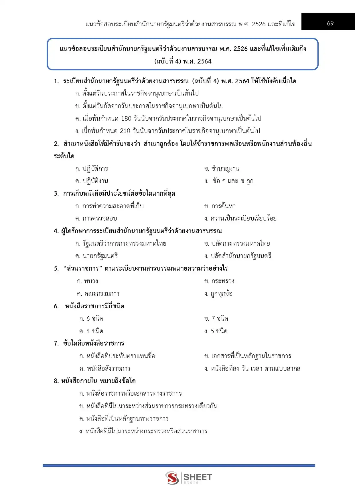 – แนวข้อสอบสรุปสาระสำคัญระเบียบสำนักนายกรัฐมนตรีว่าด้วยงานสารบรรณ พ.ศ. 2526 และที่แก้ไขเพิ่มเติมถึง (ฉบับที่ 4) พ.ศ. 2564