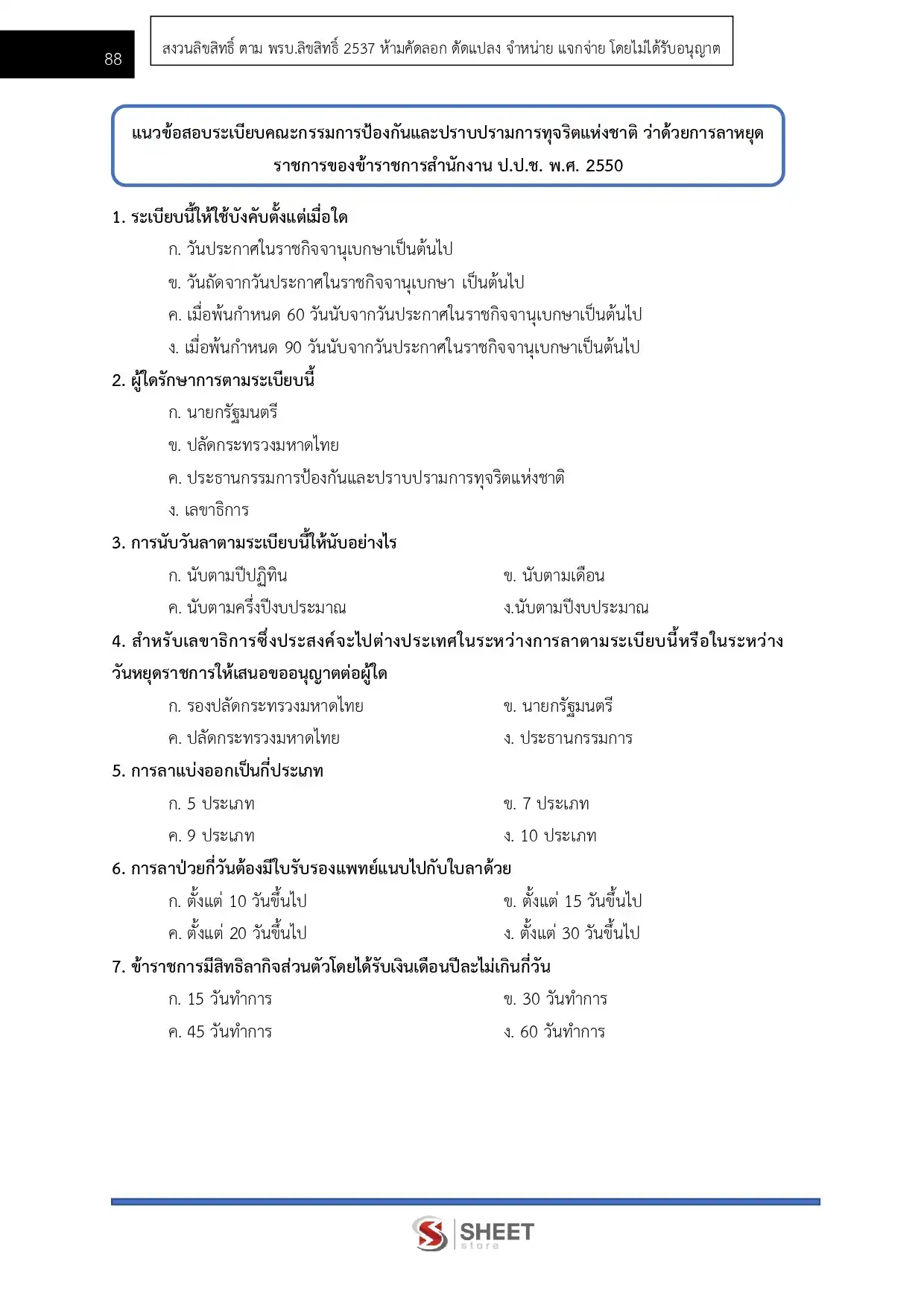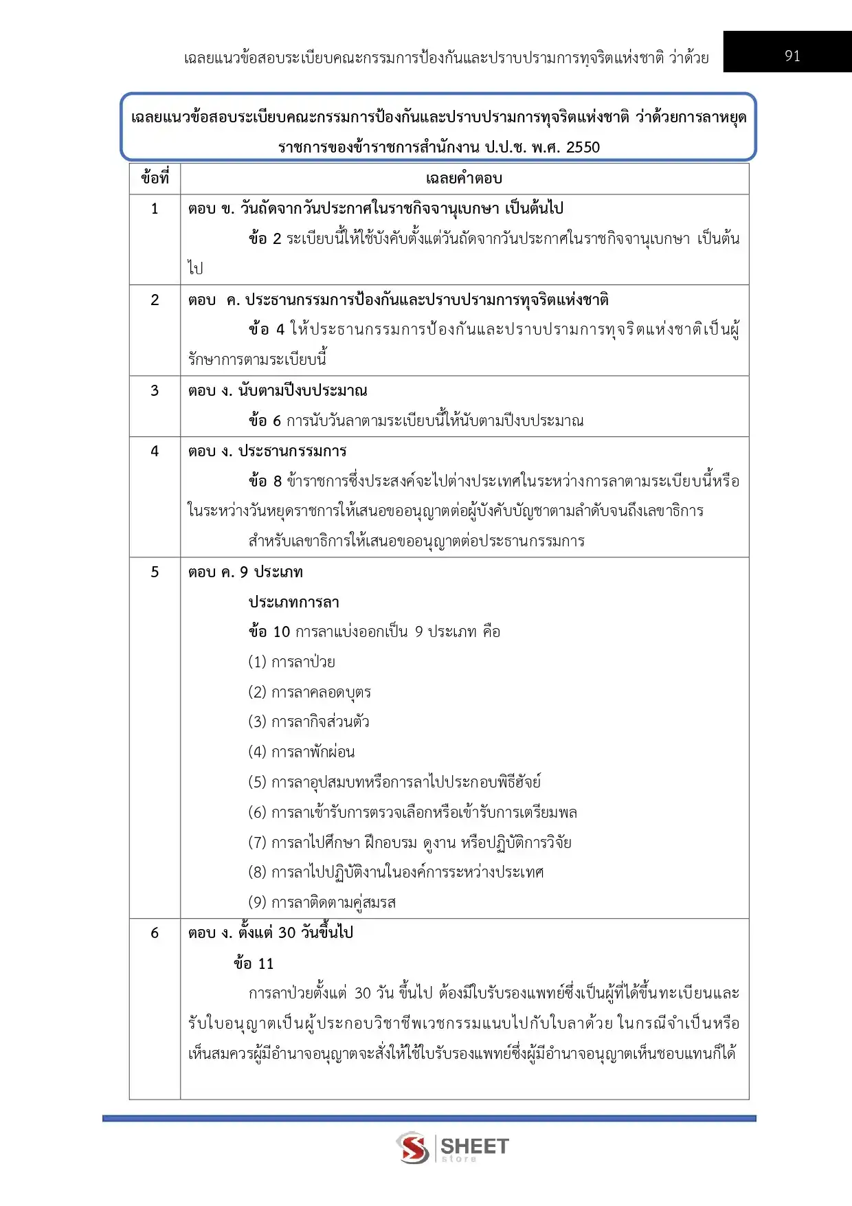 – แนวข้อสอบระเบียบคณะกรรมการป้องกันและปราบปรามการทุจริตแห่งชาติ ว่าด้วยการลาหยุดราชการของข้าราชการสำนักงาน ป.ป.ช. พ.ศ. 2550