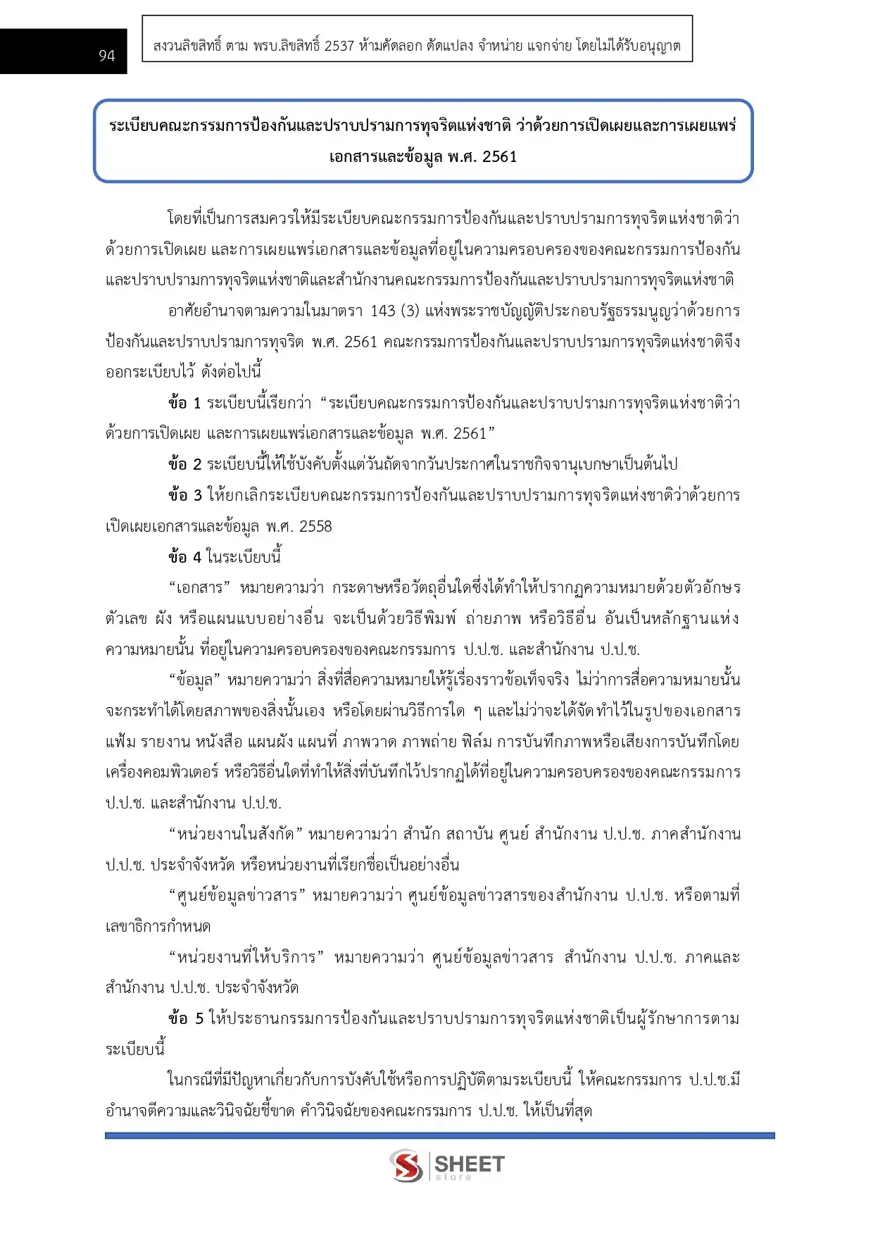 – แนวข้อสอบระเบียบคณะกรรมการป้องกันและปราบปรามการทุจริตแห่งชาติ ว่าด้วยการเปิดเผยและการเผยแพร่เอกสารและข้อมูล พ.ศ. 2561