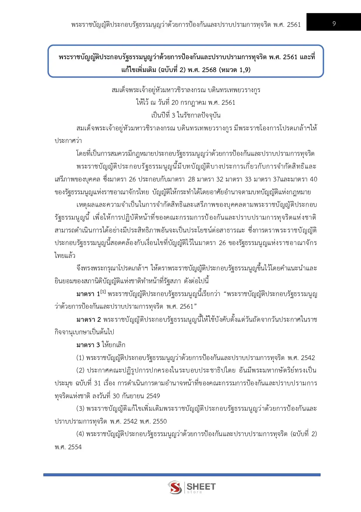 – แนวข้อสอบพระราชบัญญัติประกอบรัฐธรรมนูญว่าด้วยการป้องกันและปราบปรามการทุจริต พ.ศ. 2561 มาตรา 1 ถึง มาตรา 8 หมวด 1 คณะกรรมการป้องกันและปราบปรามการทุจริตแห่งชาติเฉพาะมาตรา 9 ถึง มาตรา 41 หมวด 9 สำนักงานคณะกรรมการป้องกันและปราบปราบปรามการทุจริตแห่งชาติ
