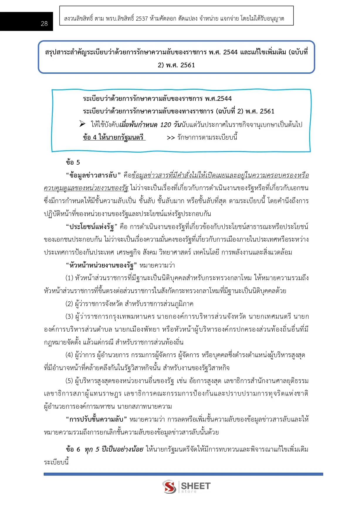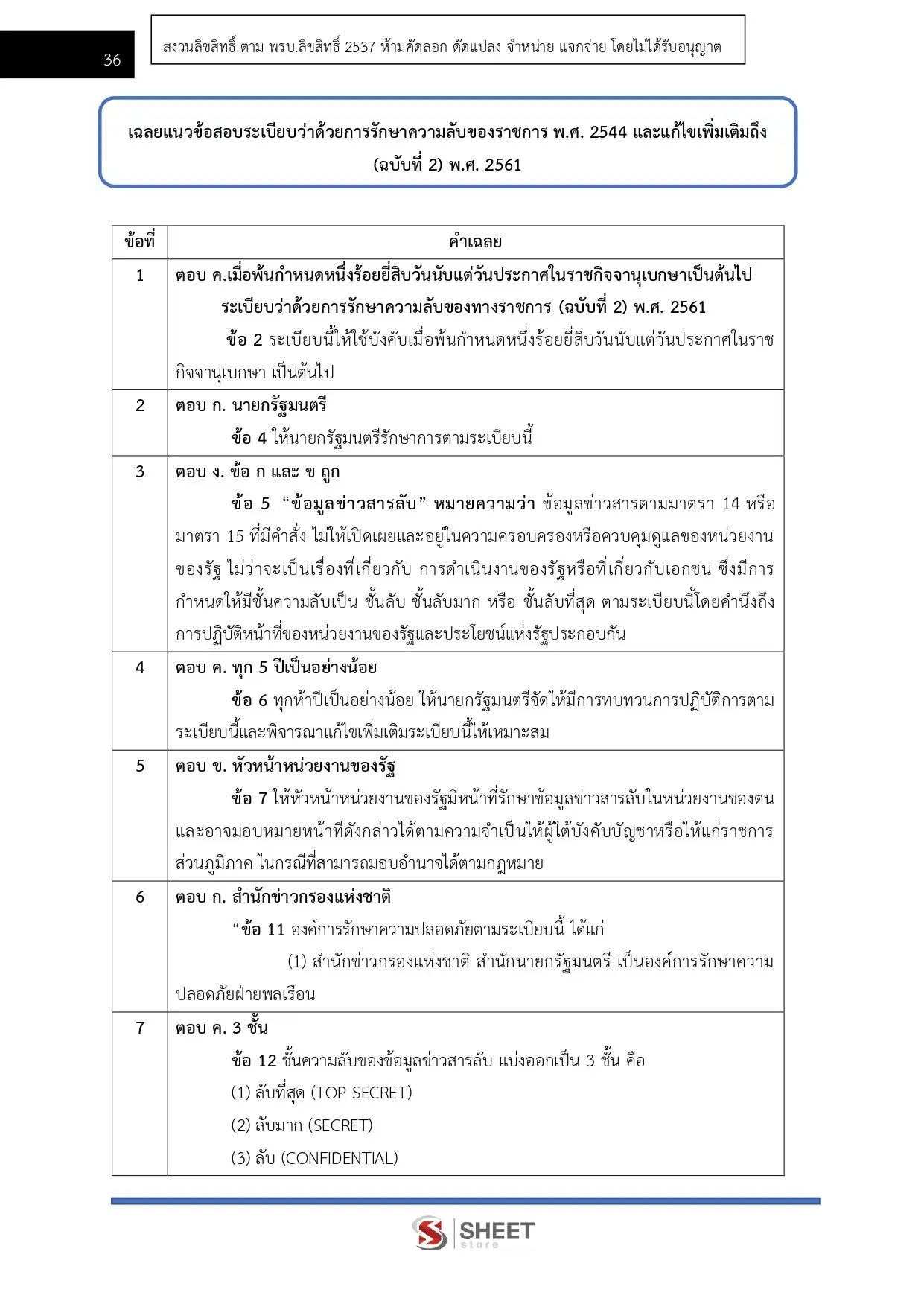 – แนวข้อสอบสรุประเบียบว่าด้วยการรักษาความลับของราชการ พ.ศ. 2544 และแก้ไขเพิ่มเติม (ฉบับที่ 2) พ.ศ. 2561