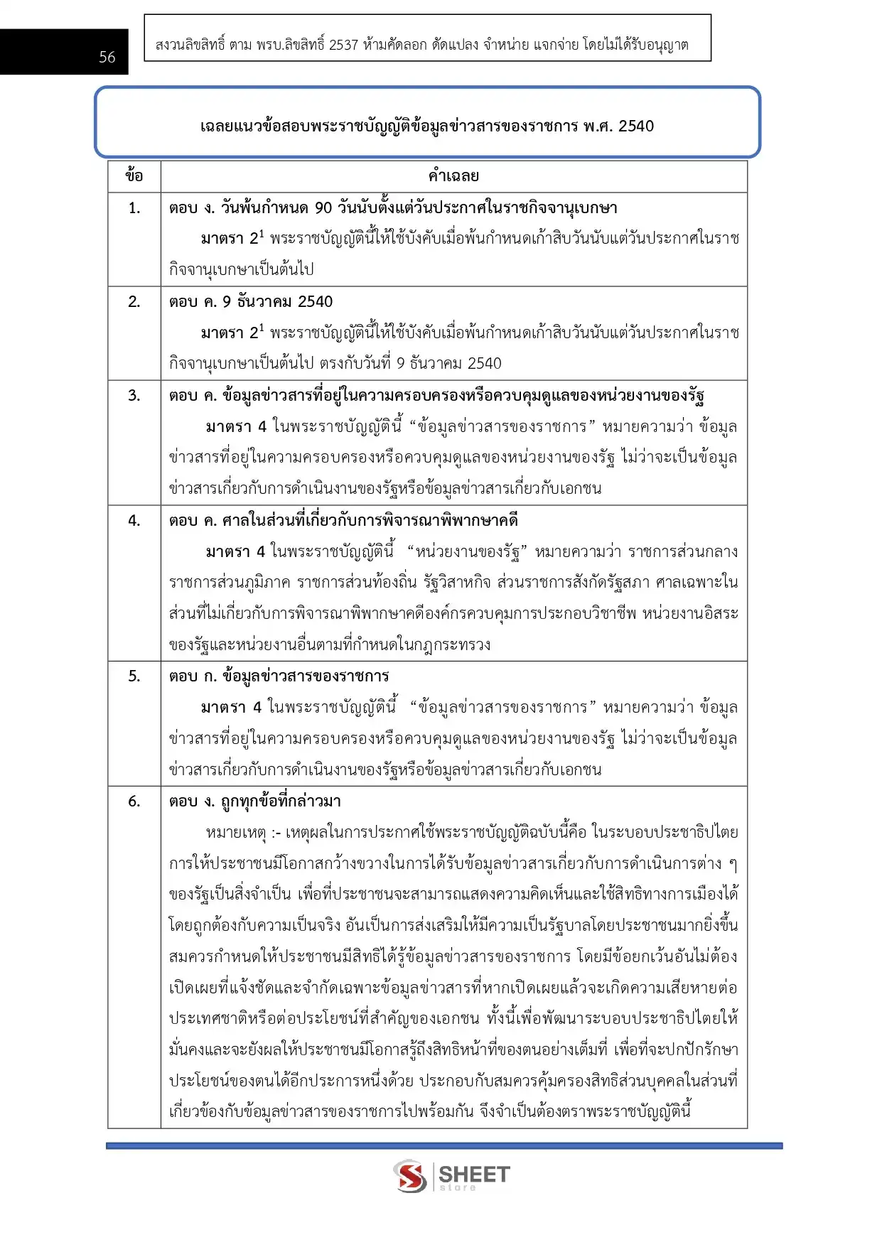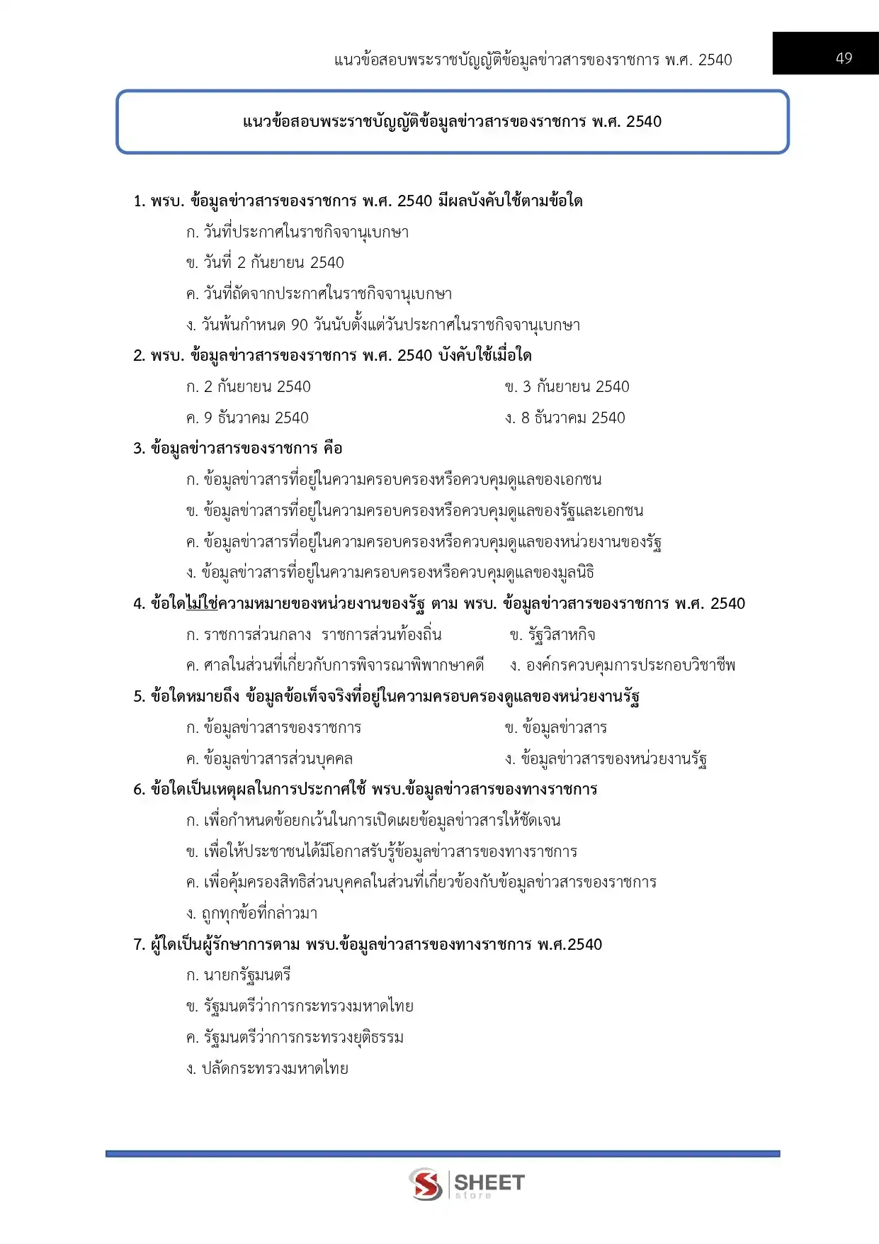 – แนวข้อสอบสรุปสาระสำคัญพระราชบัญญัติข้อมูลข่าวสารของราชการ พ.ศ. 2540