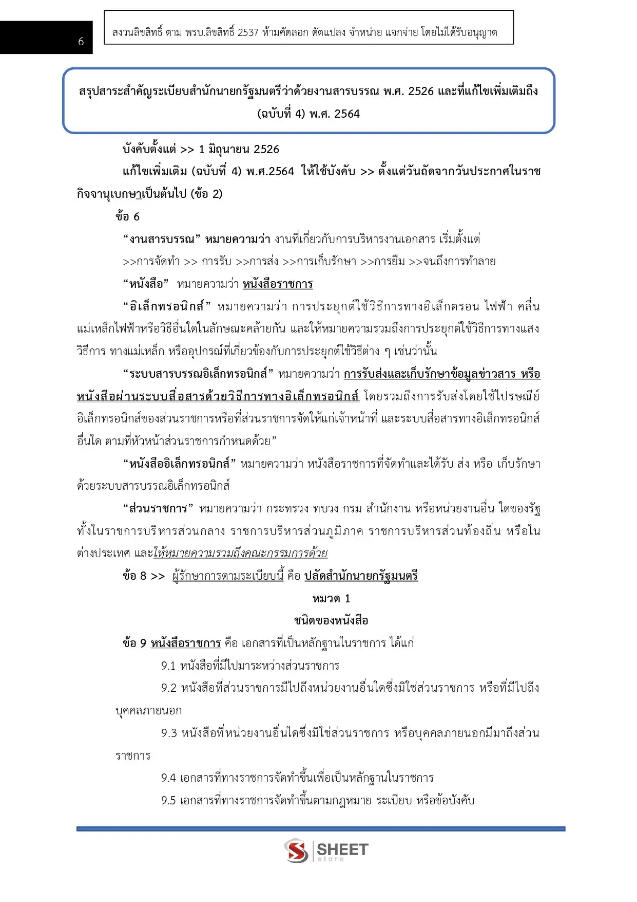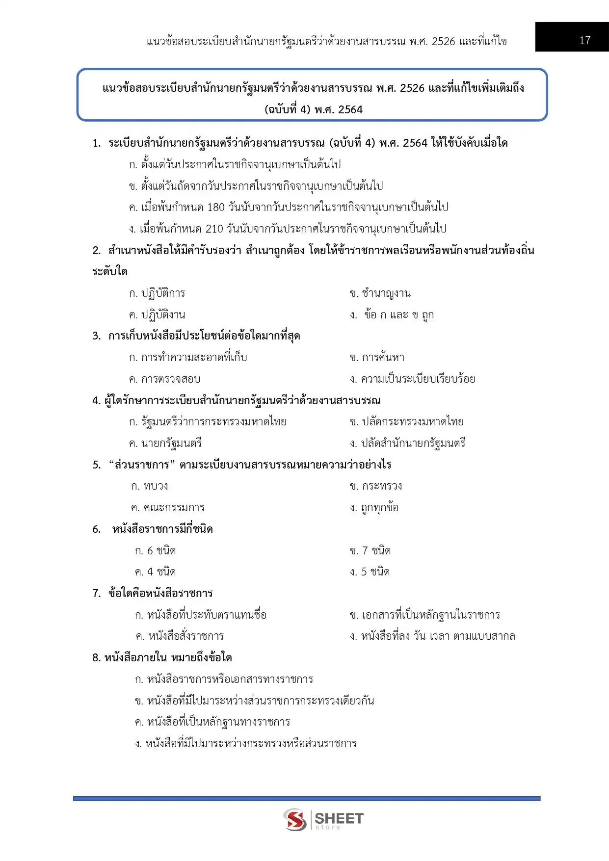 – แนวข้อสอบระเบียบสำนักนายกรัฐมนตรีว่าด้วยงานสารบรรณ พ.ศ. 2526 และแก้ไขเพิ่มเติมถึง (ฉบับที่ 4) พ.ศ. 2564