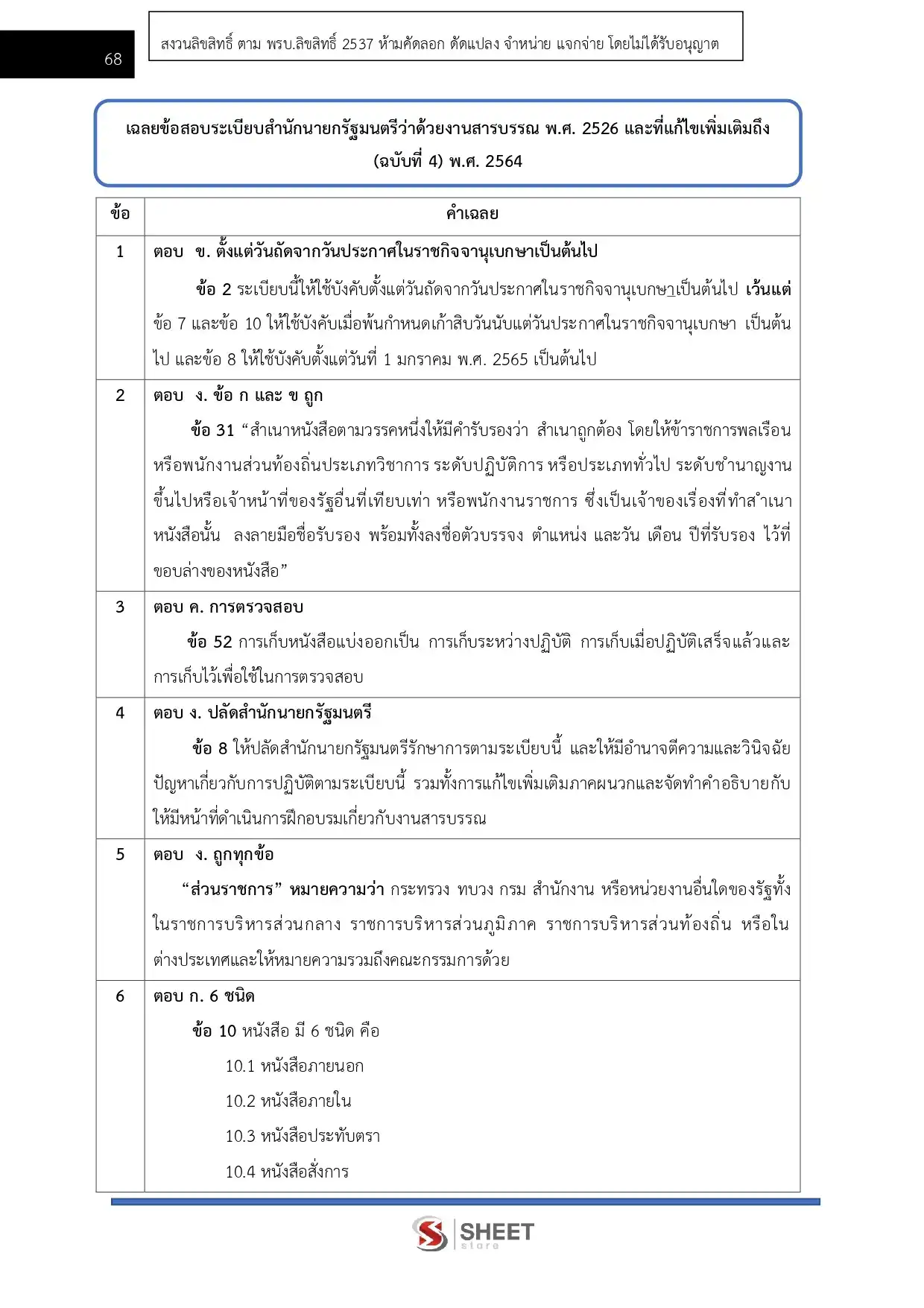 – แนวข้อสอบระเบียบสำนักนายกรัฐมนตรีว่าด้วยงานสารบรรณ พ.ศ. 2526 และที่แก้ไขเพิ่มเติมถึง (ฉบับที่ 4) พ.ศ. 2564