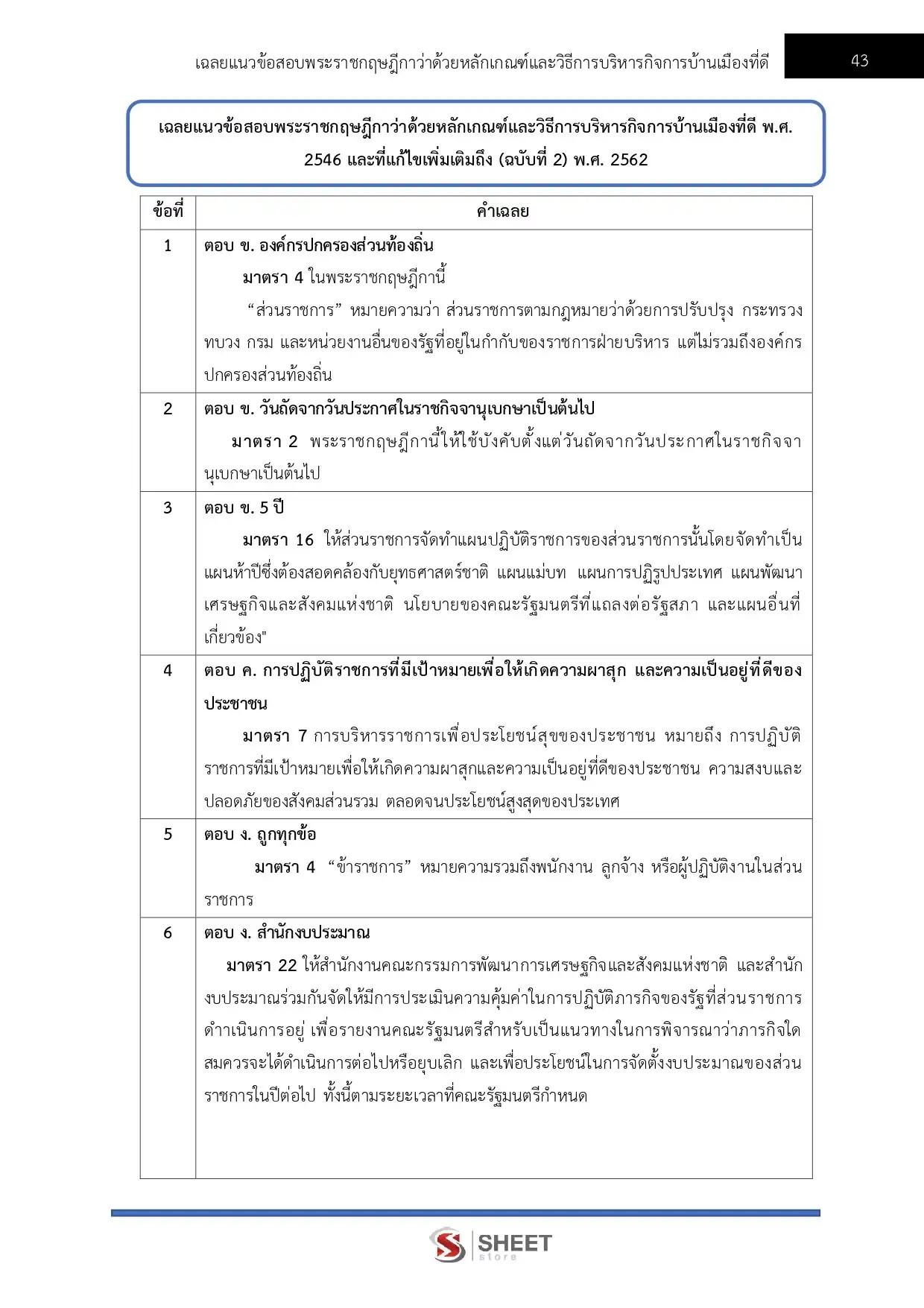 – แนวข้อสอบพระราชกฤษฎีกาว่าด้วยหลักเกณฑ์และวิธีการบริหารกิจการบ้านเมืองที่ดี พ.ศ. 2546 และที่แก้ไขเพิ่มเติมถึง (ฉบับที่ 2) พ.ศ. 2562