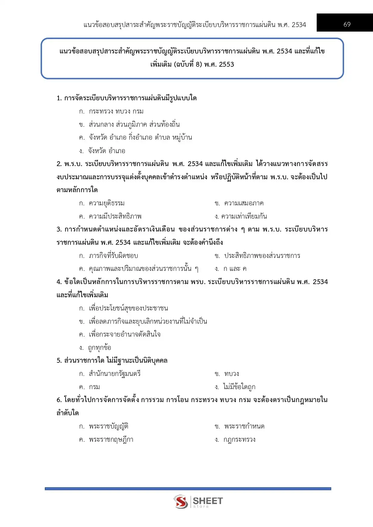 – แนวข้อสอบพระราชบัญญัติระเบียบบริหารราชการแผ่นดิน พ.ศ. 2534 และที่แก้ไขเพิ่มเติมถึง (ฉบับที่ 8) พ.ศ. 2553