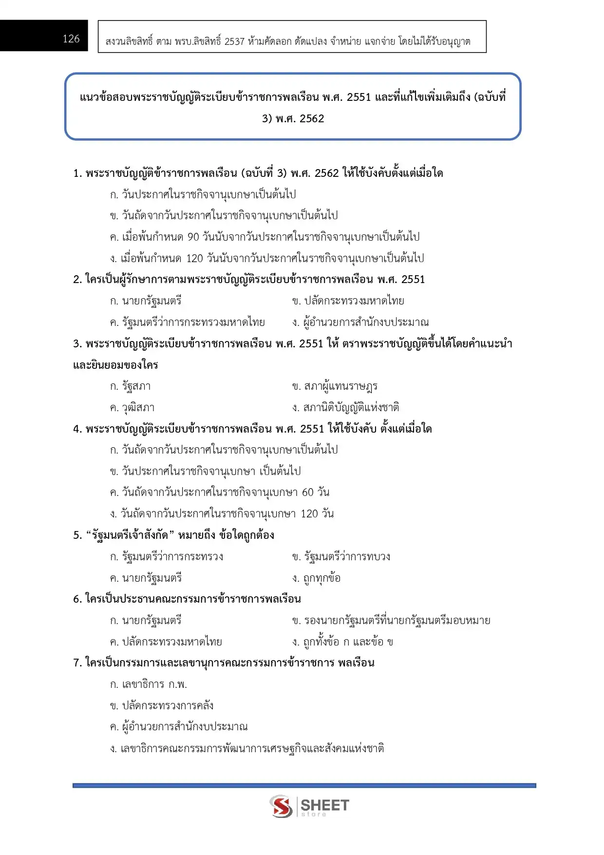 – แนวข้อสอบพระราชบัญญัติระเบียบข้าราชการพลเรือน พ.ศ. 2551 และที่แก้ไขเพิ่มเติมถึง (ฉบับที่ 3) พ.ศ. 2562