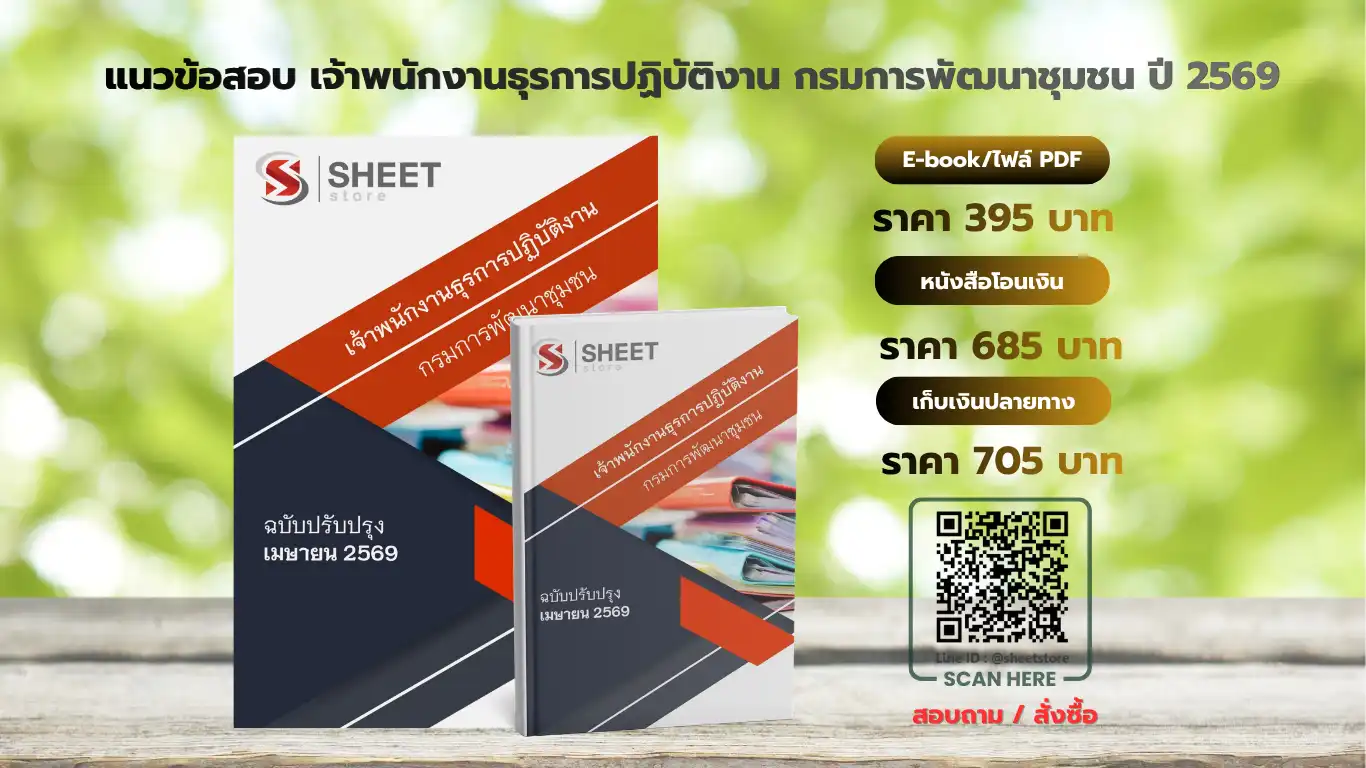![แนวข้อสอบ เจ้าพนักงานธุรการปฏิบัติงาน กรมการพัฒนาชุมชน [เม.ย.2569] - Image 19](https://tutorsheetstore.com/wp-content/uploads/2024/02/เจ้าพนักงานธุรการปฏิบัติงาน-กรมการพัฒนาชุมชน-19.webp)