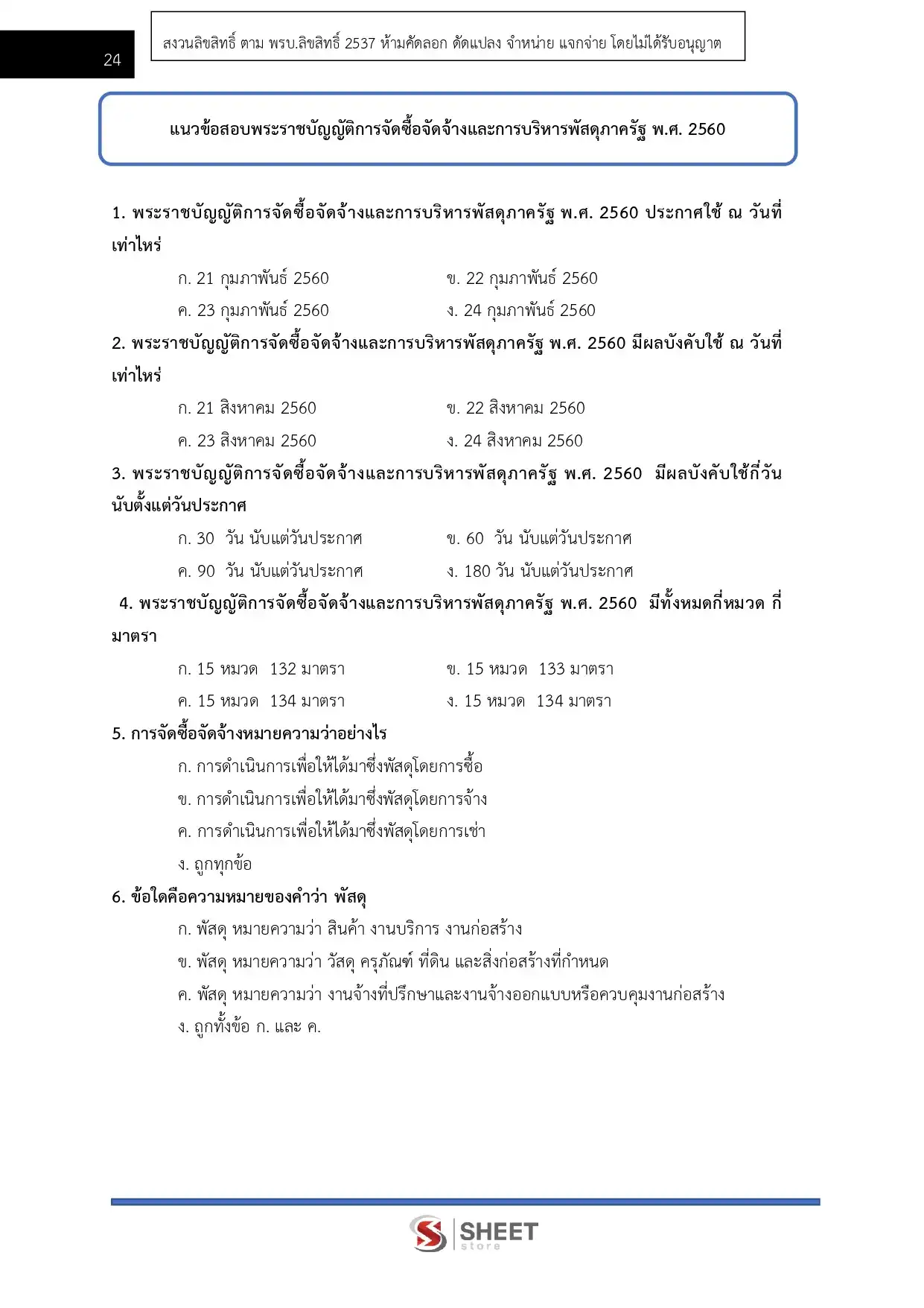 – แนวข้อสอบสรุปสาระสำคัญพระราชบัญญัติการจัดซื้อจัดจ้างและการบริหารพัสดุภาครัฐ พ.ศ. 2560