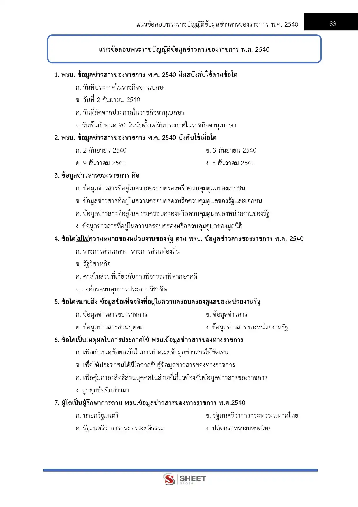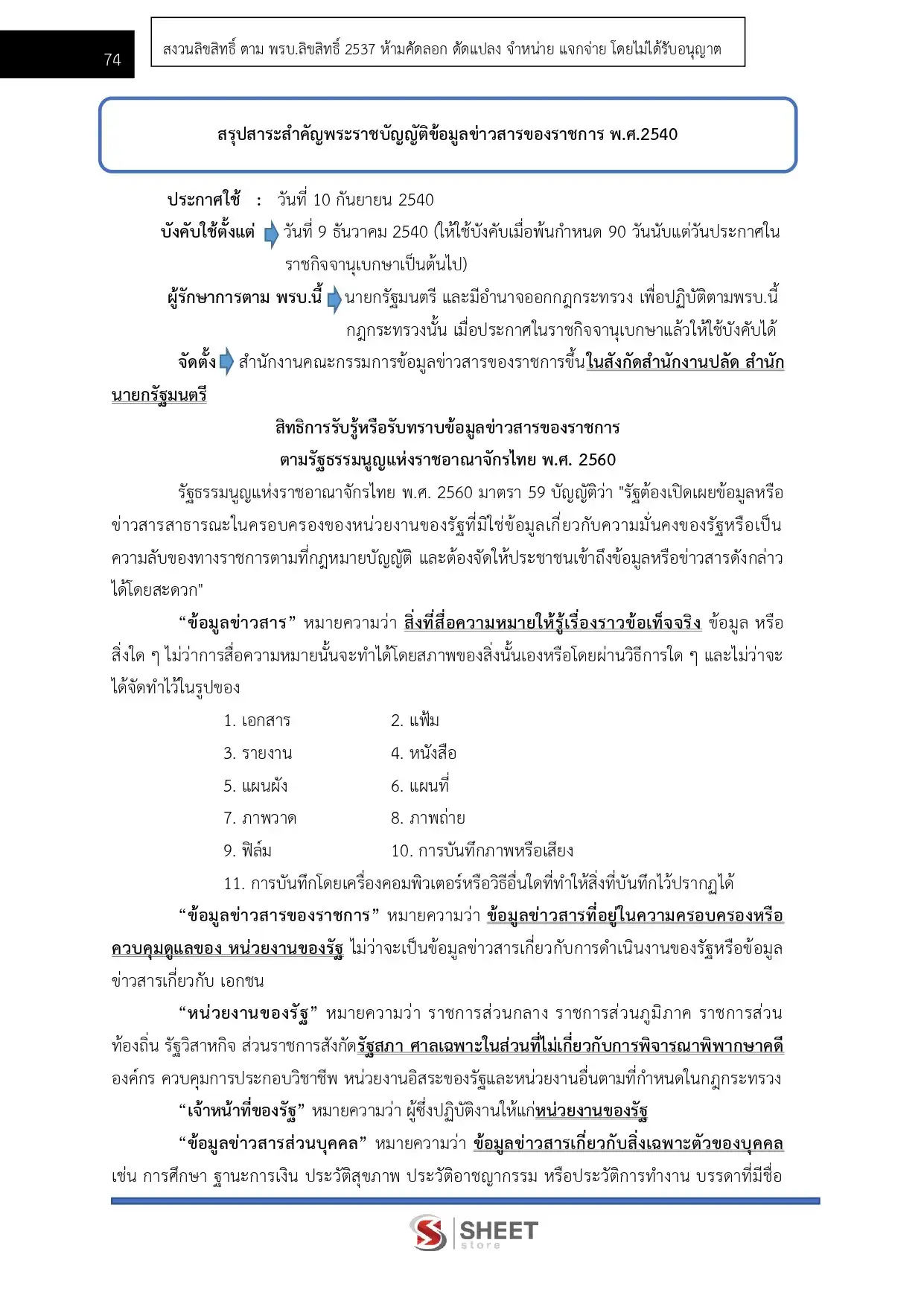 – แนวข้อสอบสรุปสาระสำคัญพระราชบัญญัติข้อมูลข่าวสารของราชการ พ.ศ. 2540