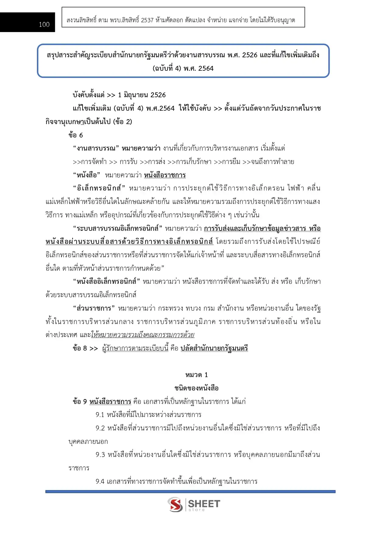– แนวข้อสอบสรุปสาระสำคัญระเบียบสำนักนายกรัฐมนตรีว่าด้วยงานสารบรรณ พ.ศ. 2526 และที่แก้ไขเพิ่มเติมถึง (ฉบับที่ 4) พ.ศ. 2564
