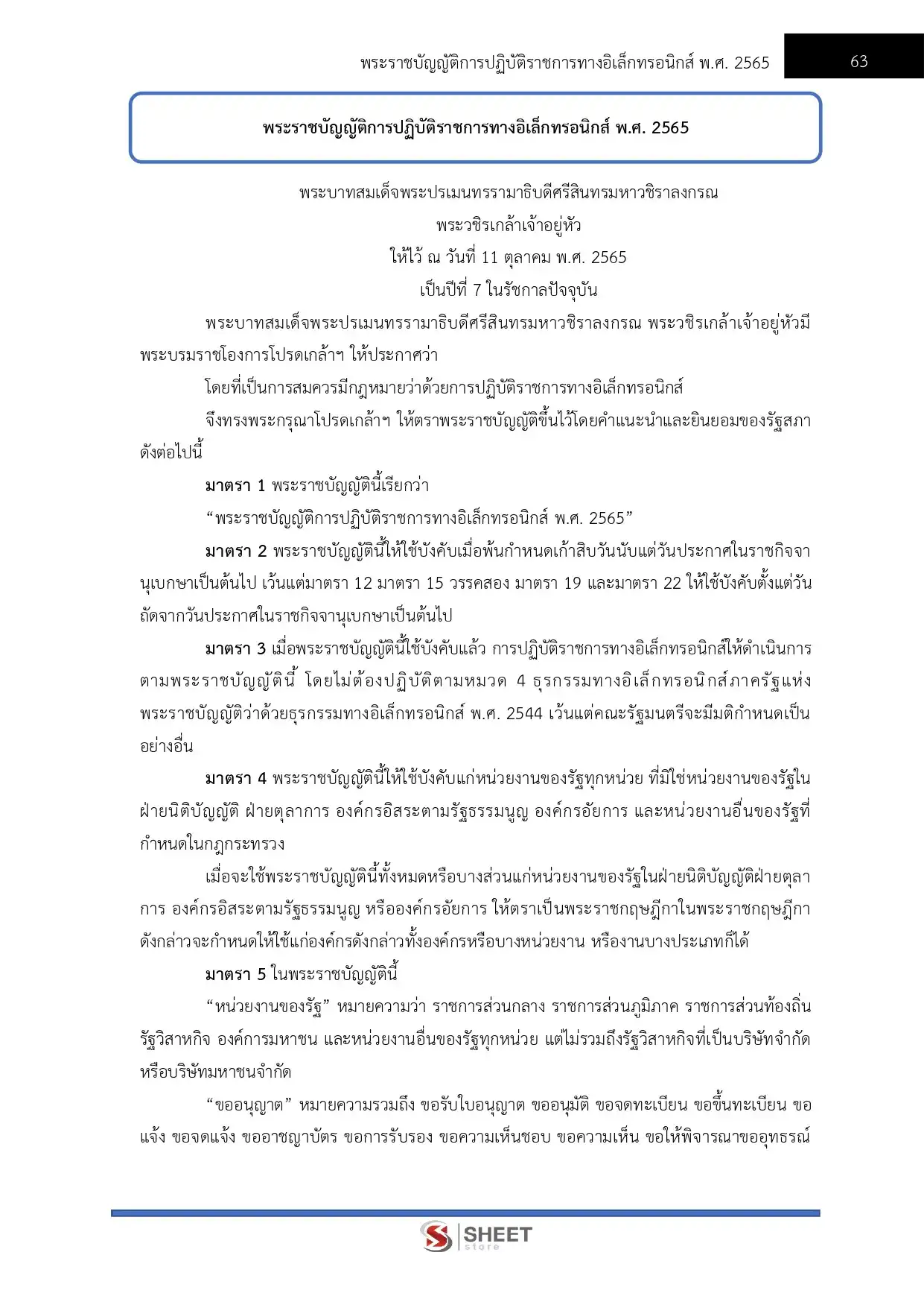– พระราชบัญญัติการปฏิบัติราชการทางอิเล็กทรอนิกส์ พ.ศ. 2565