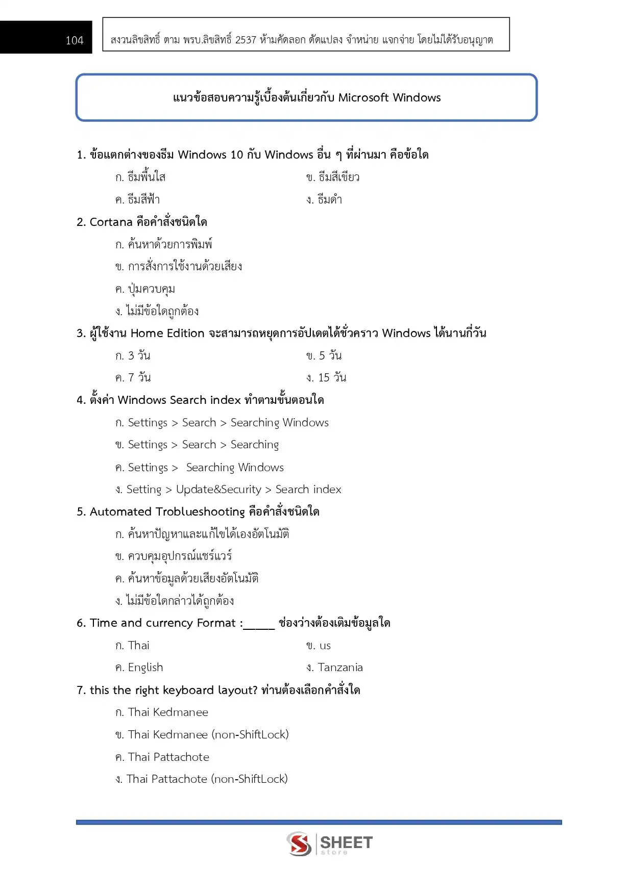 – แนวข้อสอบการใช้คอมพิวเตอร์ Microsoft Windows