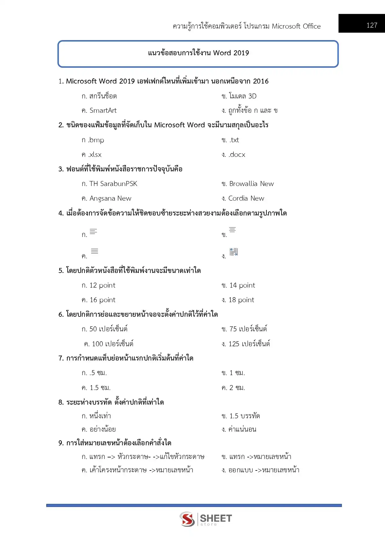 – แนวข้อสอบการใช้คอมพิวเตอร์ โปรแกรม Microsoft Office