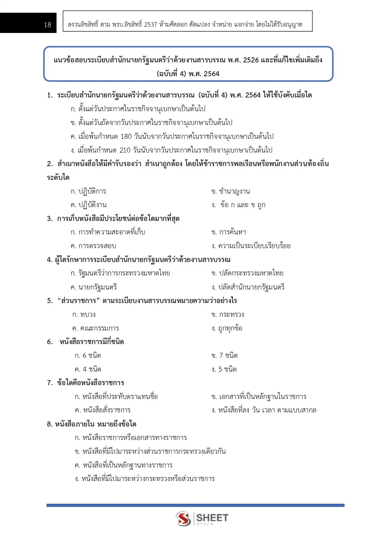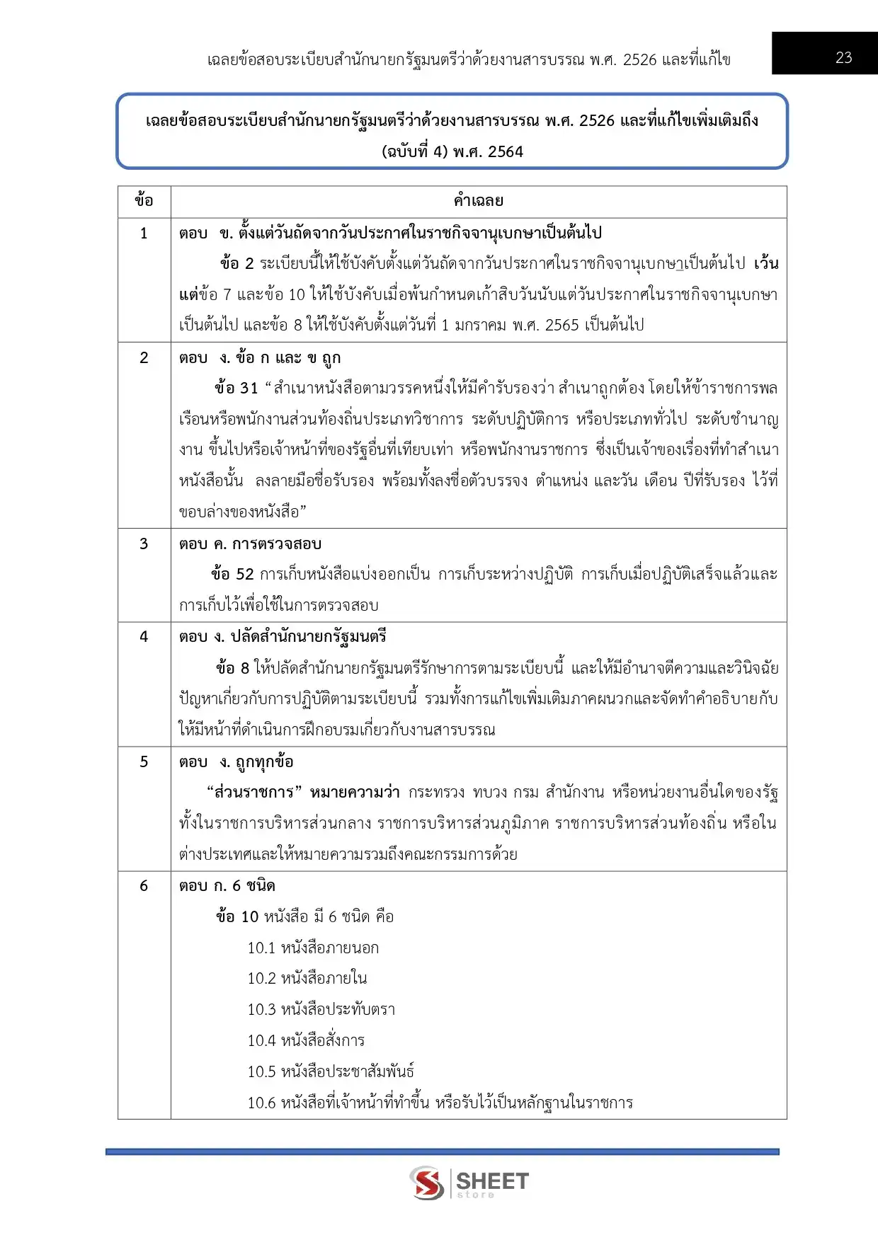 – แนวข้อสอบระเบียบสำนักนายกรัฐมนตรีว่าด้วยงานสารบรรณ พ.ศ. 2526 และแก้ไขเพิ่มเติมถึง (ฉบับที่ 4) พ.ศ. 2564