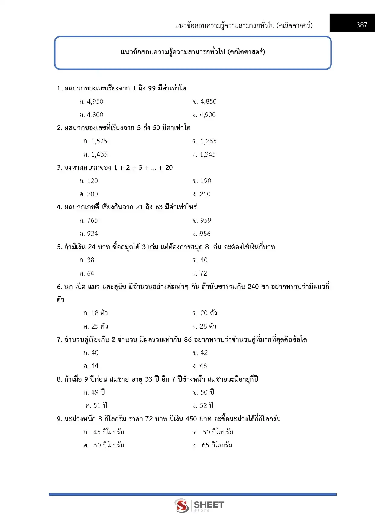 – แนวข้อสอบความรู้ความสามารถทั่วไป (คณิตศาสตร์)
