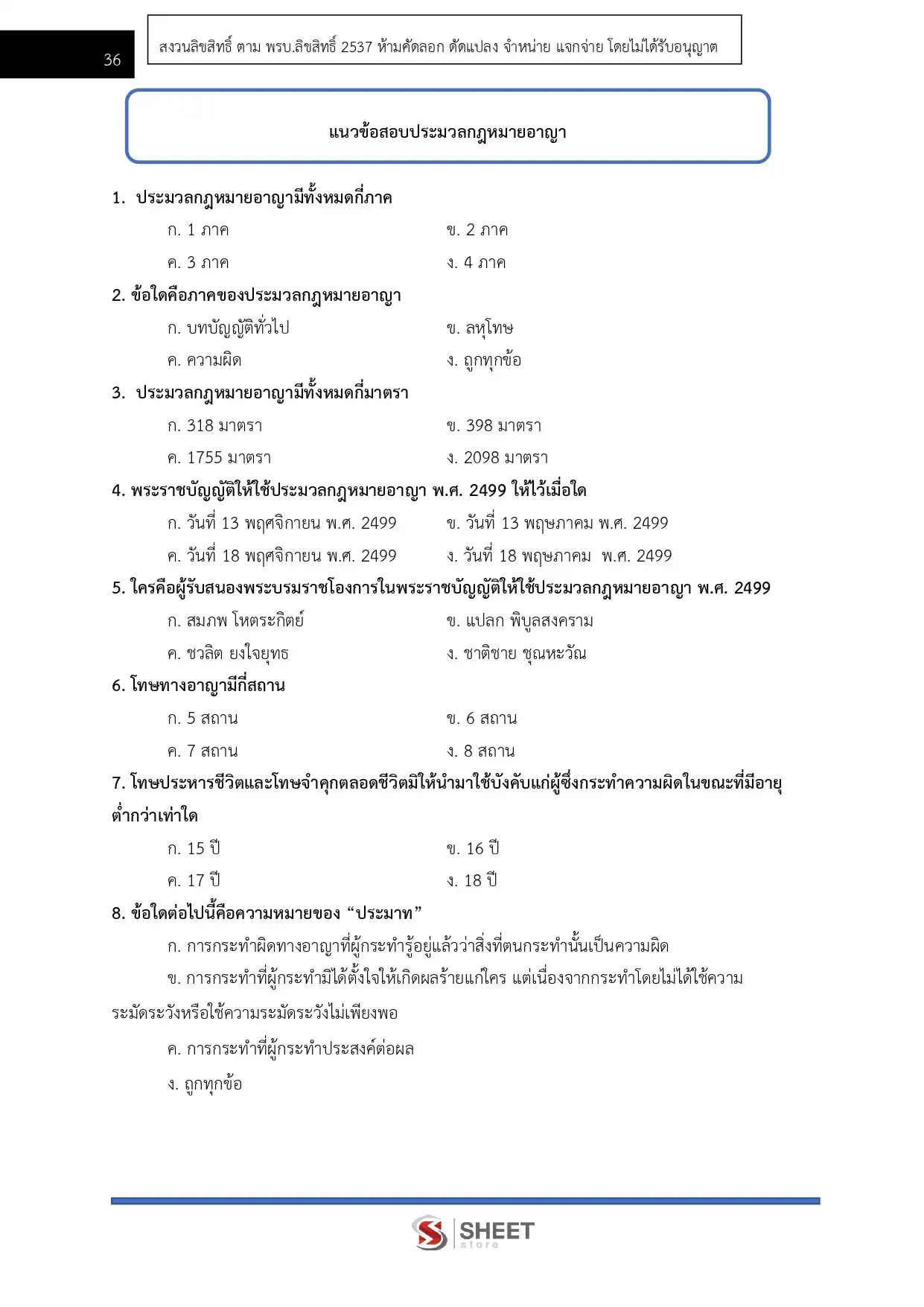 – แนวข้อสอบสรุปประมวลกฎหมายอาญา