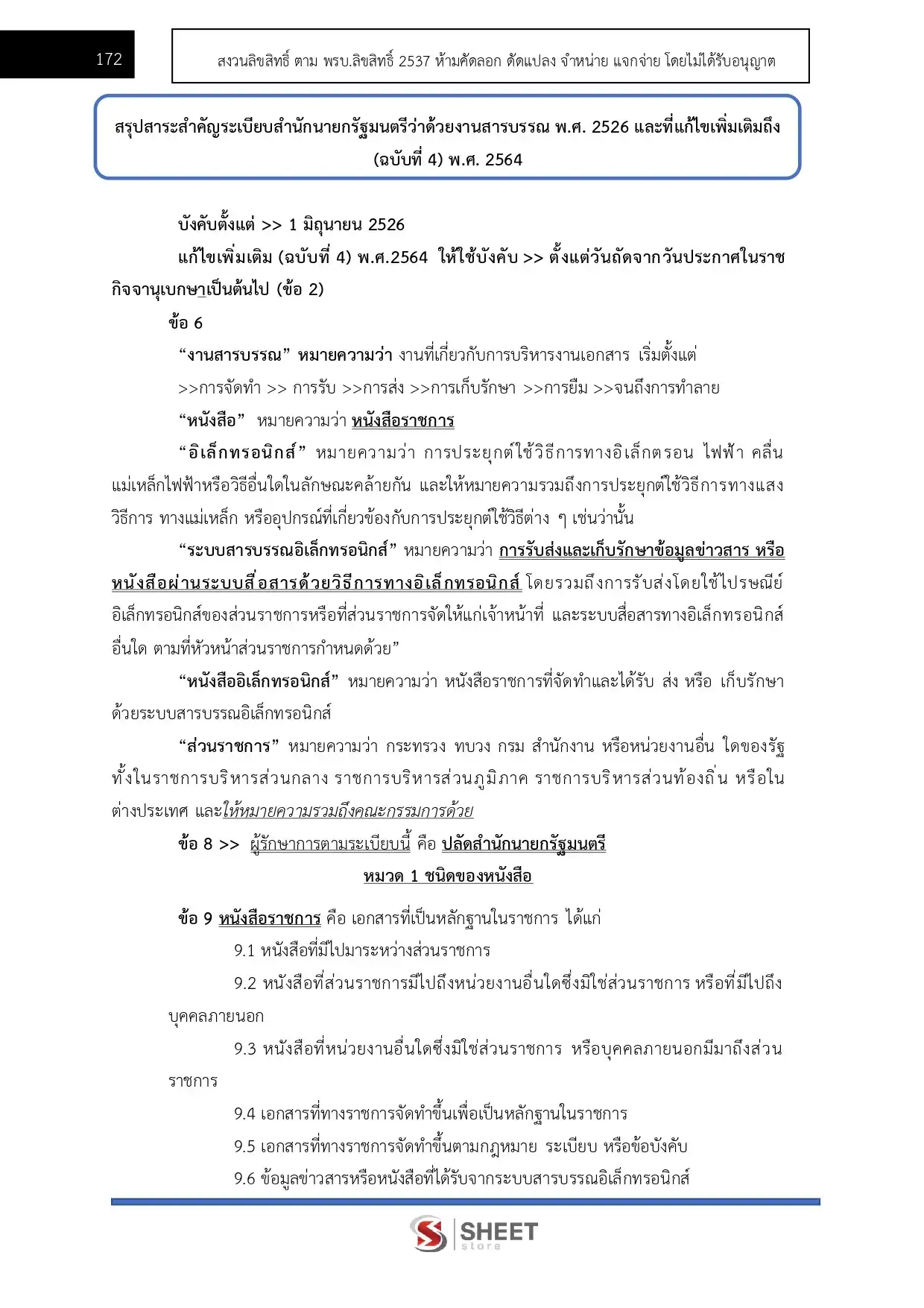 – แนวข้อสอบสรุปสาระสำคัญระเบียบสำนักนายกรัฐมนตรีว่าด้วยงานสารบรรณ พ.ศ. 2526 และที่แก้ไขเพิ่มเติมถึง (ฉบับที่ 4) พ.ศ. 2564