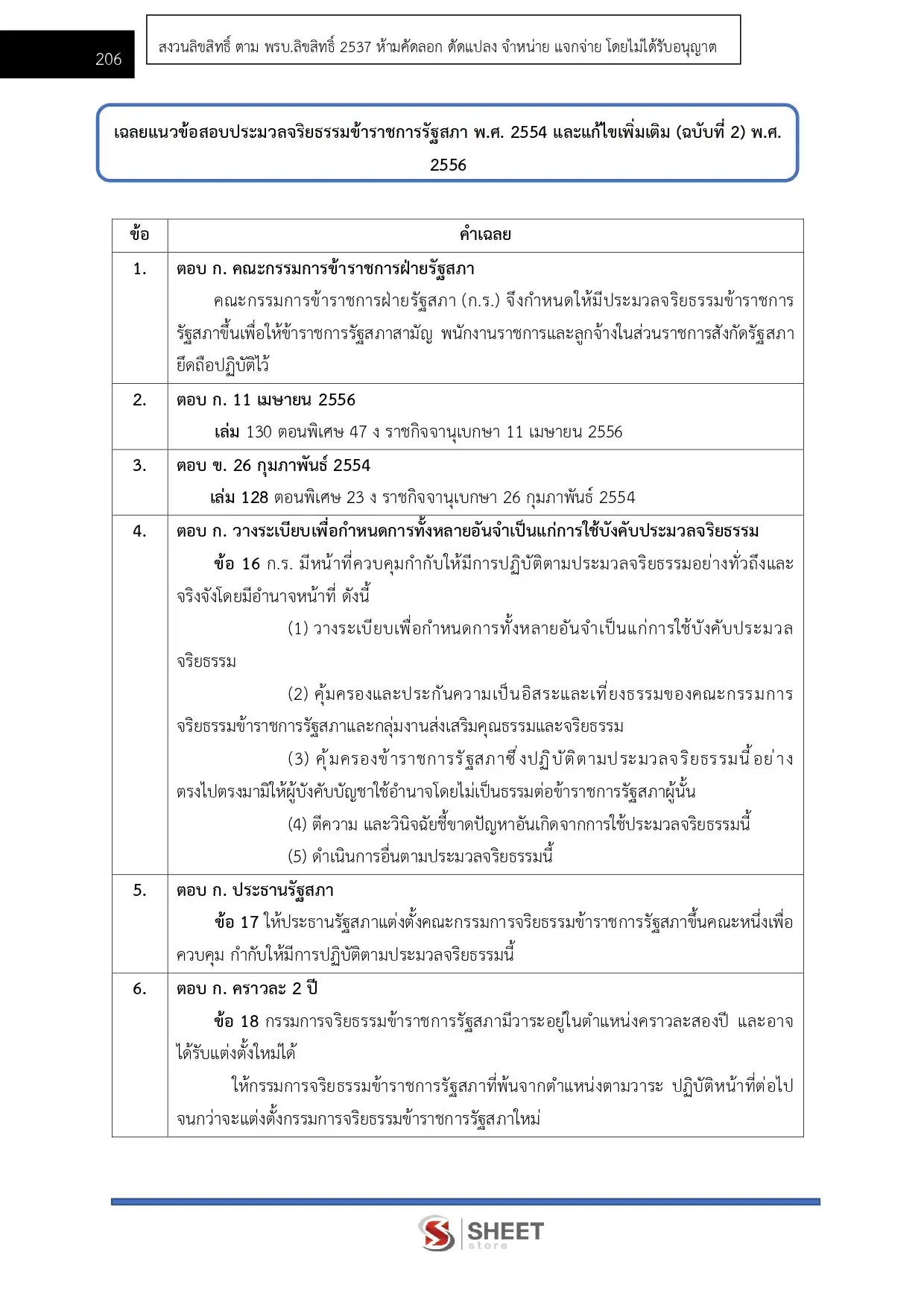 – แนวข้อสอบประมวลจริยธรรมข้าราชการรัฐสภา พ.ศ. 2554 และที่แก้ไขเพิ่มเติม (ฉบับที่ 2) พ.ศ. 2556
