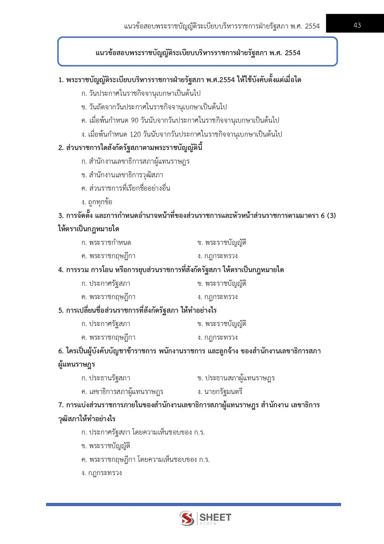 – แนวข้อสอบพระราชบัญญัติระเบียบบริหารราชการฝ่ายรัฐสภา พ.ศ. 2554
