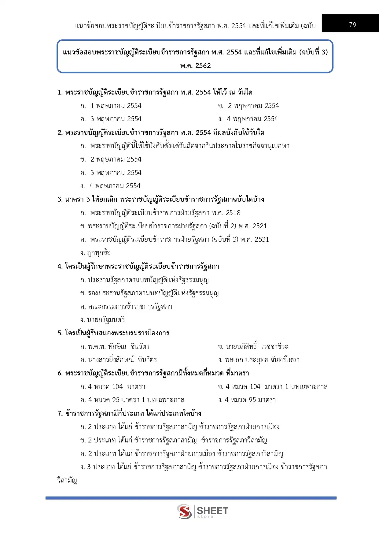 – แนวข้อสอบพระราชบัญญัติระเบียบข้าราชการรัฐสภา พ.ศ. 2554 และที่แก้ไขเพิ่มเติม (ฉบับที่ 3) พ.ศ. 2562
